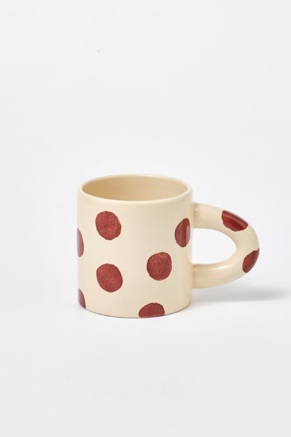 Designed in London and hand-painted with intricate detail, the Hand-Painted Butter and Burgundy Spot Mug brings charm to every sip. Featuring a handle and an all-over polka dot design, this ceramic mug is both unique and timeless. Measuring Diameter 9.5cm x Height 10cm, it’s the perfect blend of function and artistry. Please note all ceramics can only be shipped within the UK.