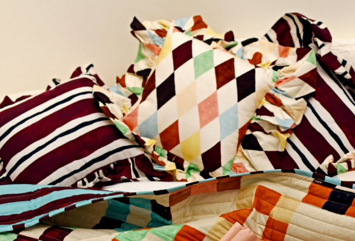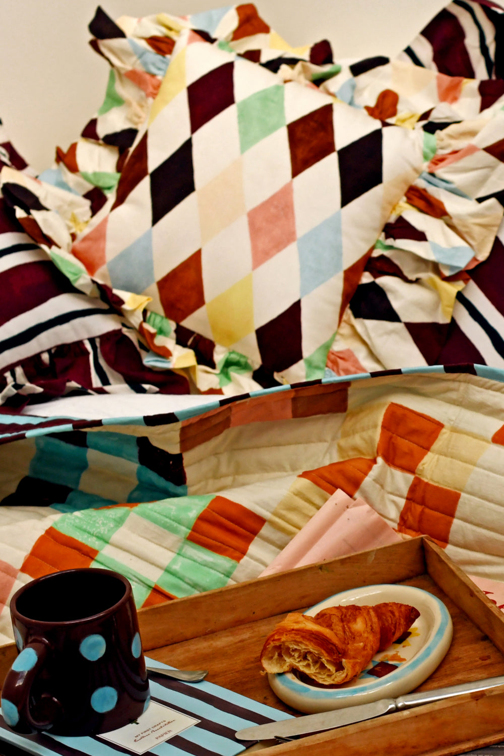 The perfect Harlequin print cushion to complement your living room or bedroom, featuring a beautiful frill detail and handcrafted tortoise shell buttons at the opening for a refined, artisanal touch. This cushion is designed in London and made with intricate attention to detail. Measuring 30x30cm (excluding frill), Mix and match it with the Damson Bedding Throw, the ideal way to bring warmth and character to your home this autumn.