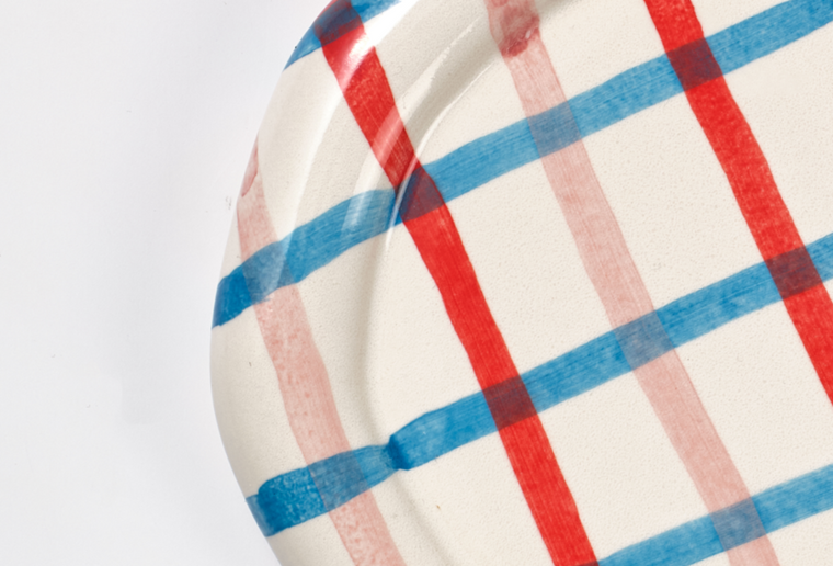 Designed in London and hand-painted with intricate detail, the Hand-Painted Check Saucer is both charming and versatile. Featuring a softly rounded edge, this ceramic piece showcases a classic check print with a delicate cherry border. Perfect as a saucer or a trinket tray, it measures 14.5 x 14.5 x 2 cm, making it a beautiful and functional addition to any space. Please note all ceramics can only be shipped within the UK.
