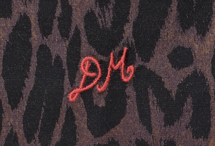 Designed in London, this leopard print adjustable dog collar features an embroidered DM detail for a distinctive touch. Measuring 25cm x 45cm, it offers a secure and adjustable fit for your pet, combining practicality with a unique design for every walk.