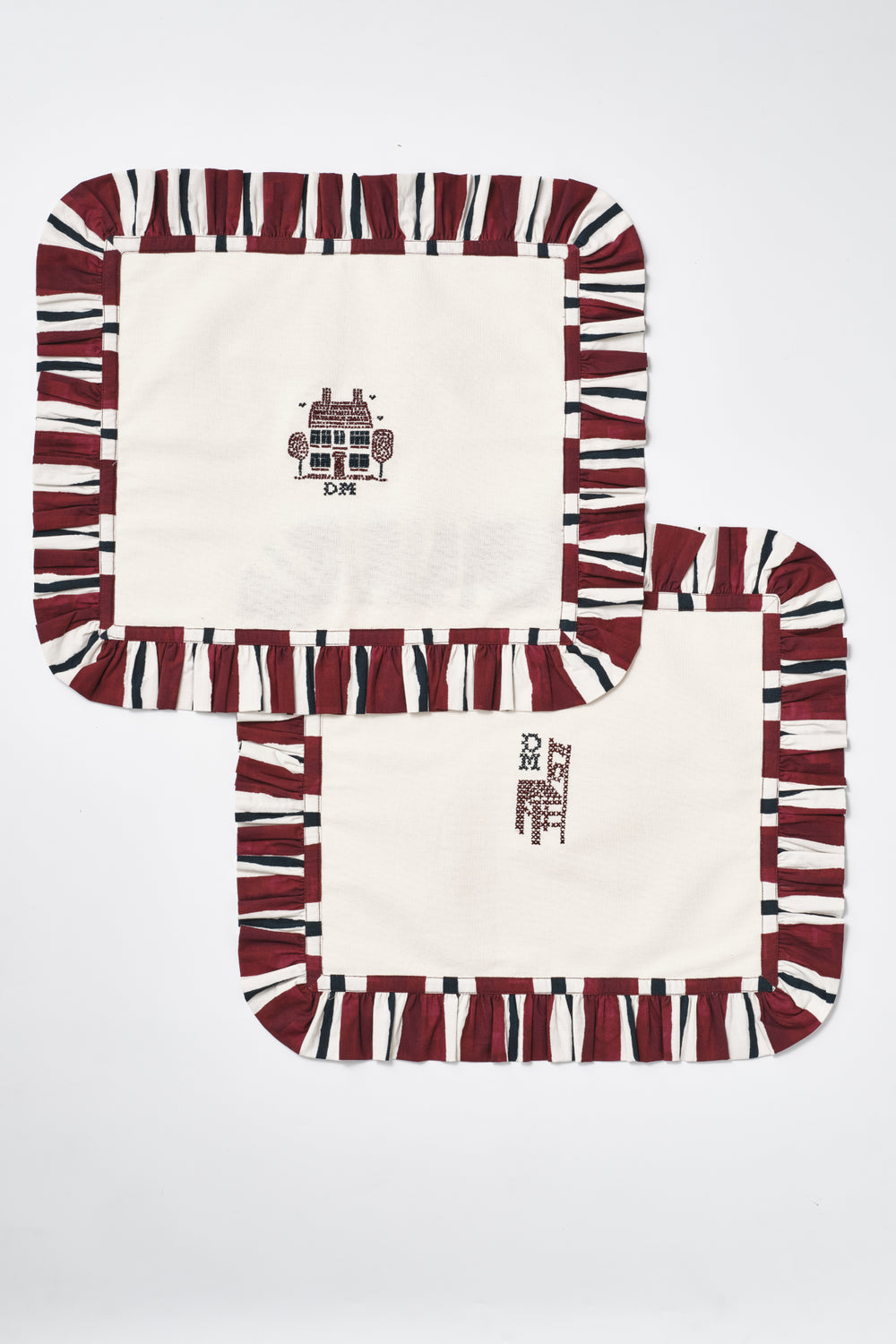 Brighten your table with this charming set of two embroidered placemats designed in London. The placemats showcase two distinct intricate embroidery designs, celebrating handcrafted artistry and the spirit of autumn with playful ruffle edges. Measuring 48cm x 42cm, they’re perfectly sized for a variety of kitchen tasks, effortlessly combining style and functionality.