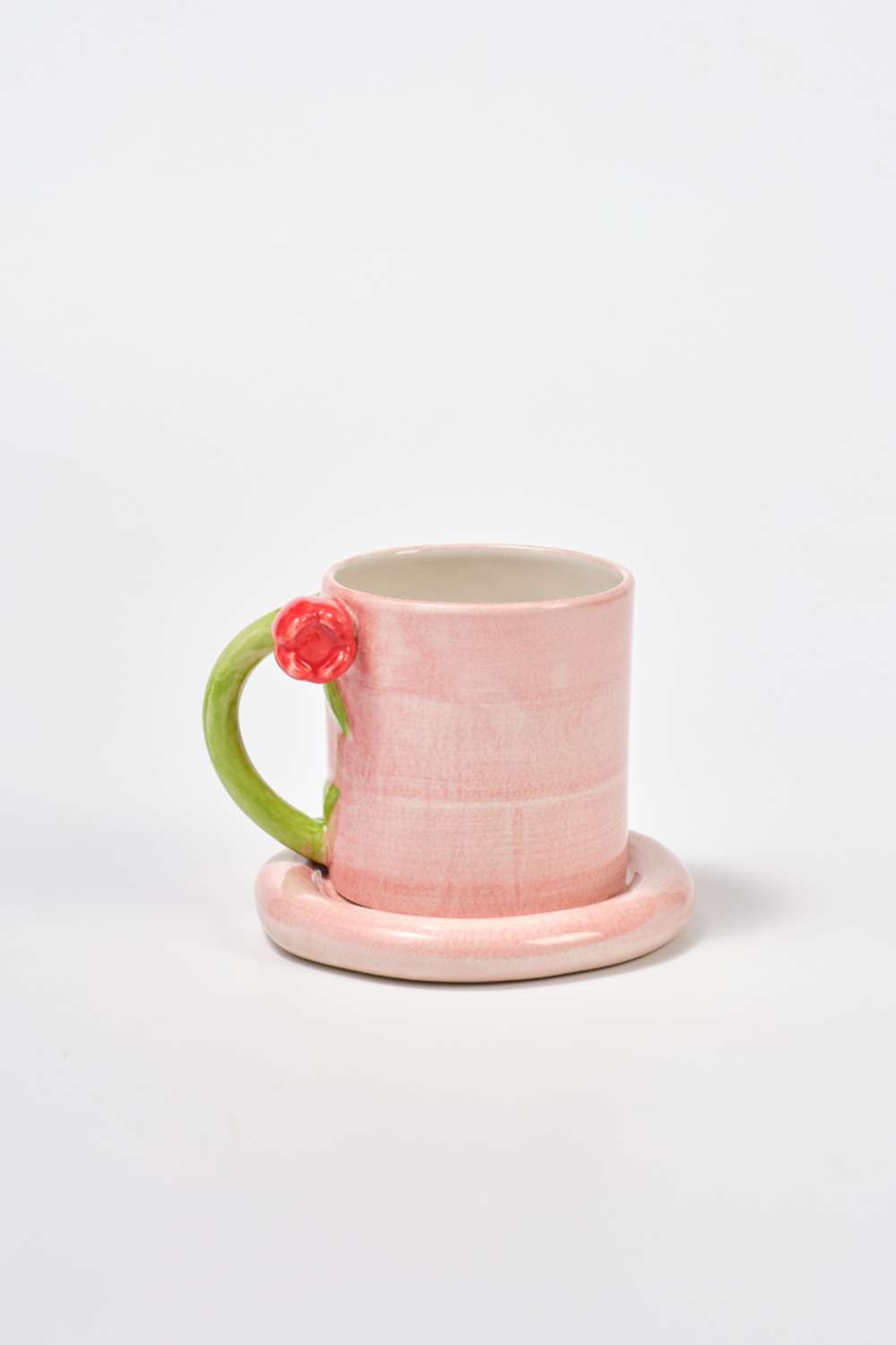 hand painted tulip handle mug - pinkhand painted tulip handle mug - pink