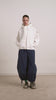 The Blake Hooded Top in ecru is a modern, versatile layer. Made from crisp cotton poplin, it features a zip-through front, side seam button details, functional tie hem channels, and hood ties, finished with a branded arm patch.