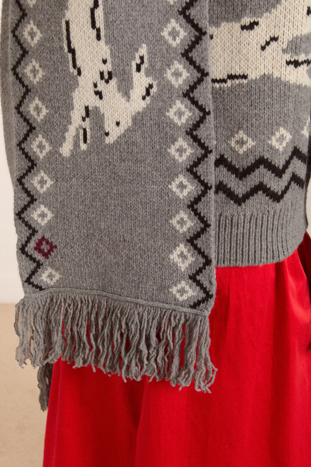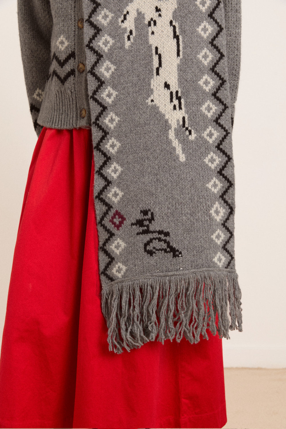 Elevate your winter wardrobe with this oversized scarf, adorned with a charming bunny motif throughout. Finished with elegant tassel details, it’s crafted from 100% Lambswool for a soft, cozy feel.