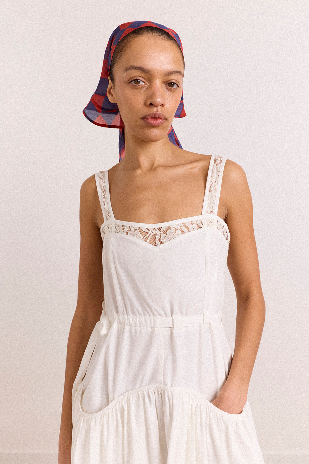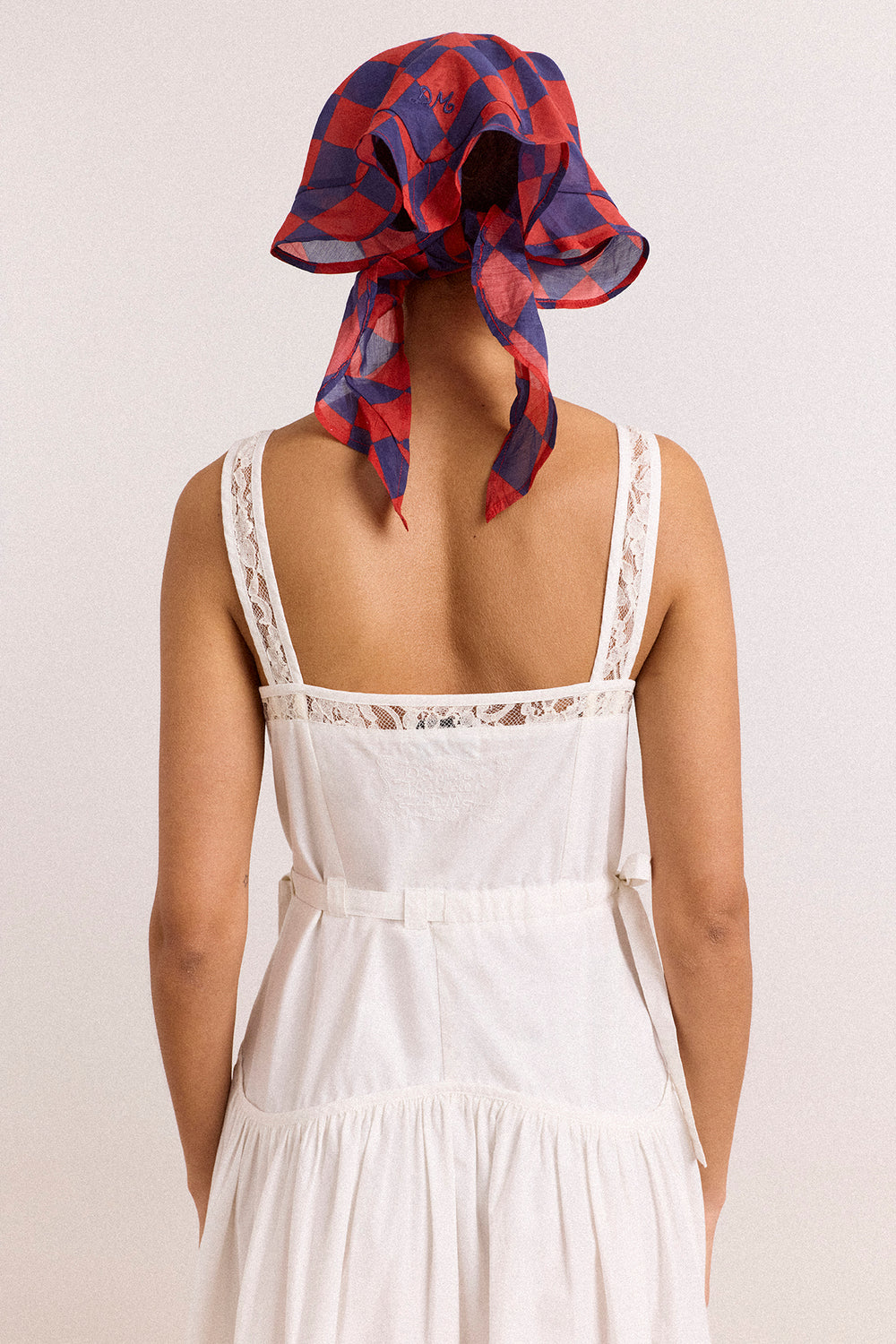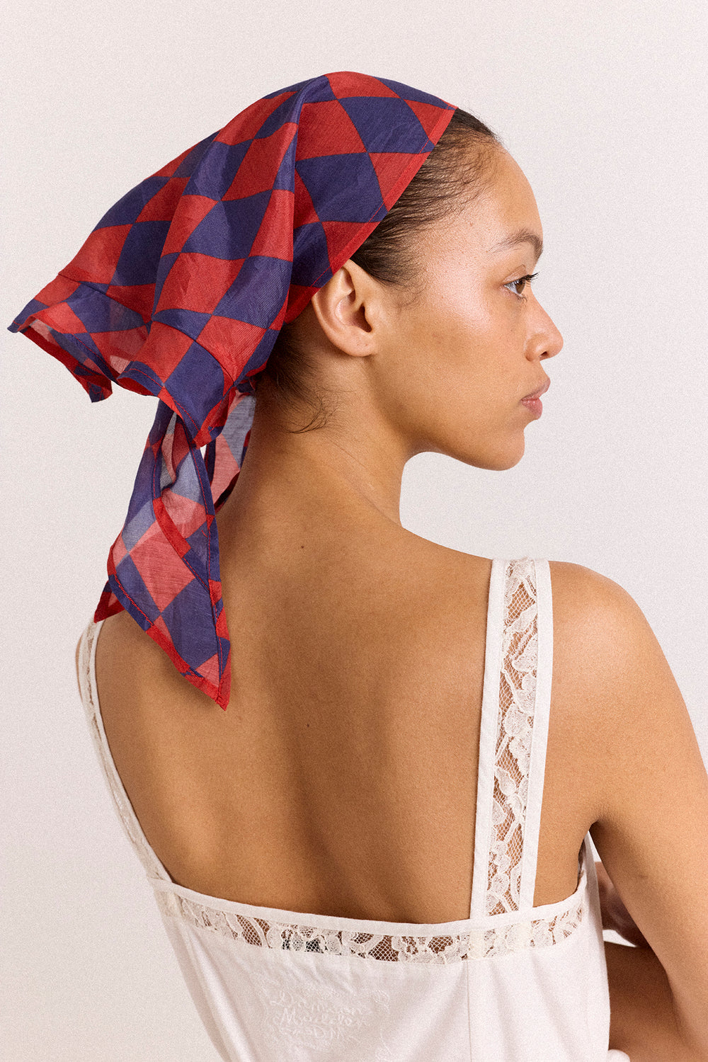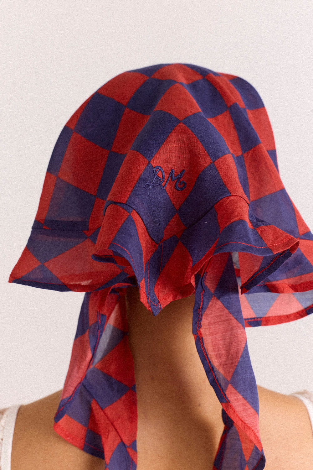 A playful finishing touch. The Frill Edge Headscarf in Harlequin features a bold print on sheer fabric, trimmed with a delicate frill edge and subtle DM branding. Style it with matching swimwear for an easy, coordinated look.