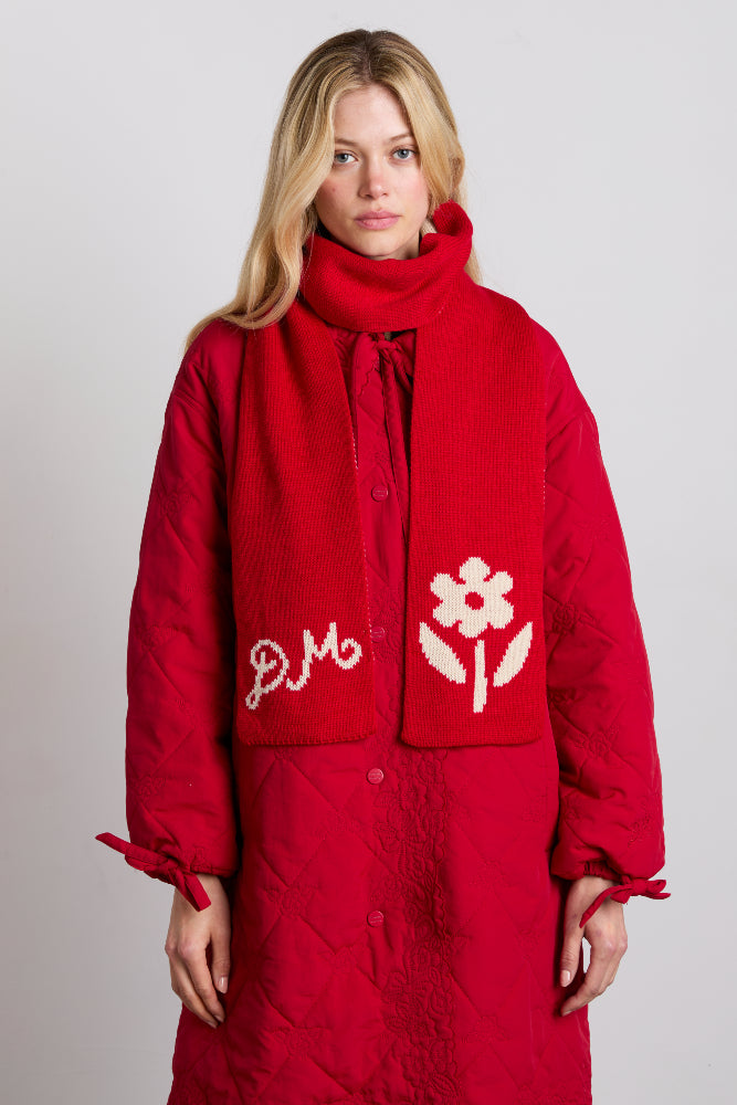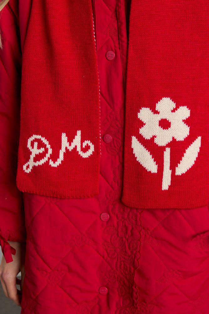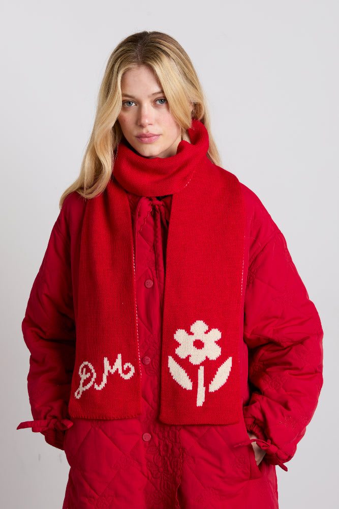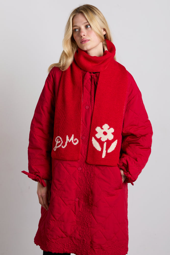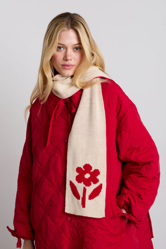 Choose your mood with this statement scarf - red on one side, ecru on the other.