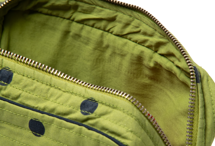 Our bestselling make up bag is back in a olive and navy polka dot. Featuring a zip fastening and signature branded DM woven label detail, to securely hold your essentials in style.