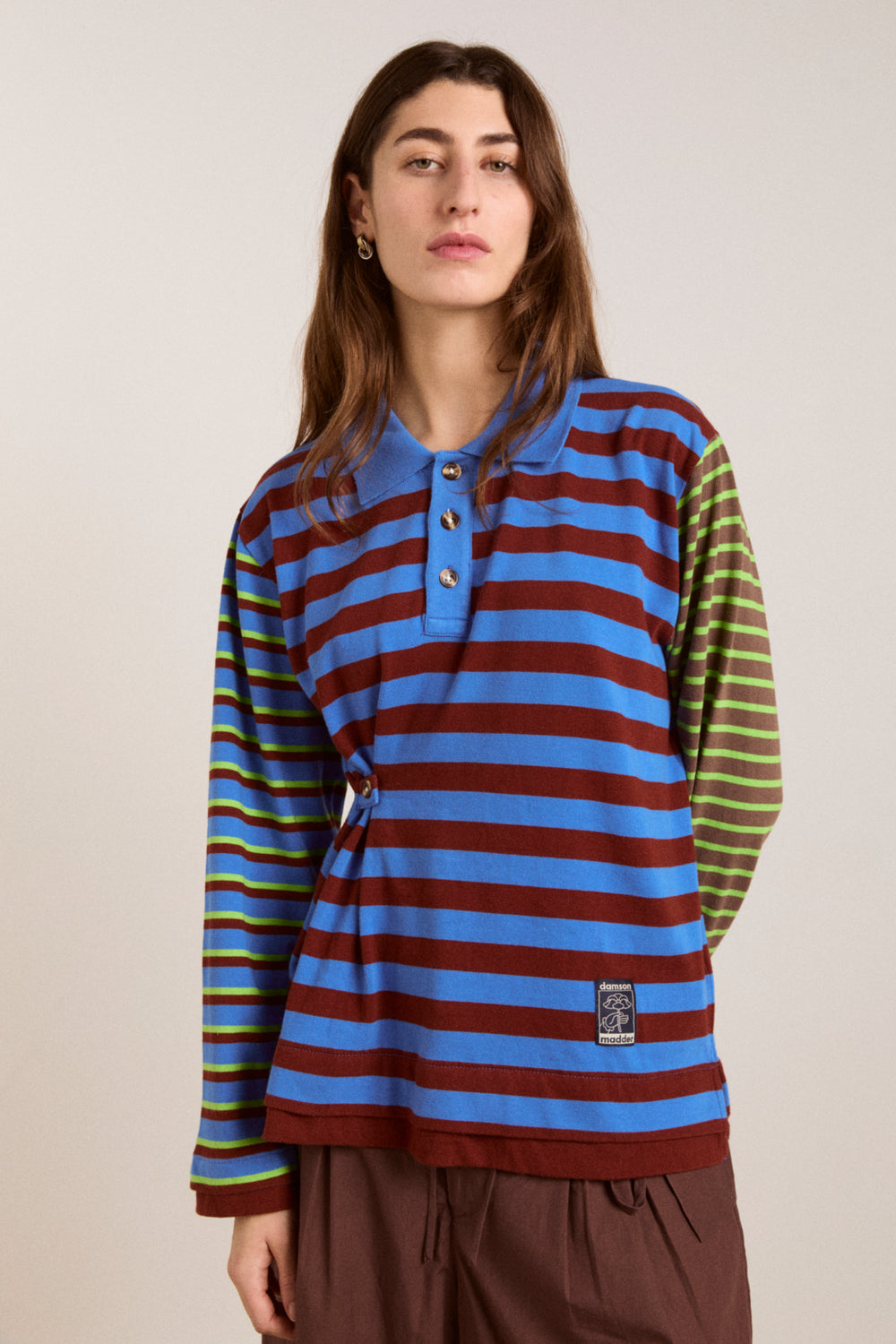 Damson Madder was born out of a desire to make exciting designs, responsibly. Run by a small, proudly female-led team from our studio in North London, we release limited collections of around 15-35 pieces per drop, and we only make what we think we will sell; minimising waste and ensuring excess stock doesn’t end up in landfill. Unlike our approach to production, our design handwriting often takes a more-is-more approach, making garments that fit and flatter; each with a unique detail or sign off that makes every piece feel special. Our garments are made to be worn again, and again (and again!)
