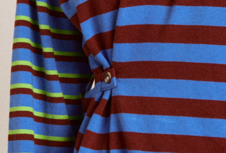 Now in a new Blue Pop Stripe colour-way, the Noah Cinch Layered Rugby brings a fresh twist to a laid-back staple. It features an oversized fit and contrast burgundy double-layer details at the hem and sleeves. Designed for multi-way wear, it’s finished with a front button and side tab so you can adjust the shape. Made from 100% Organic Cotton for everyday comfort.