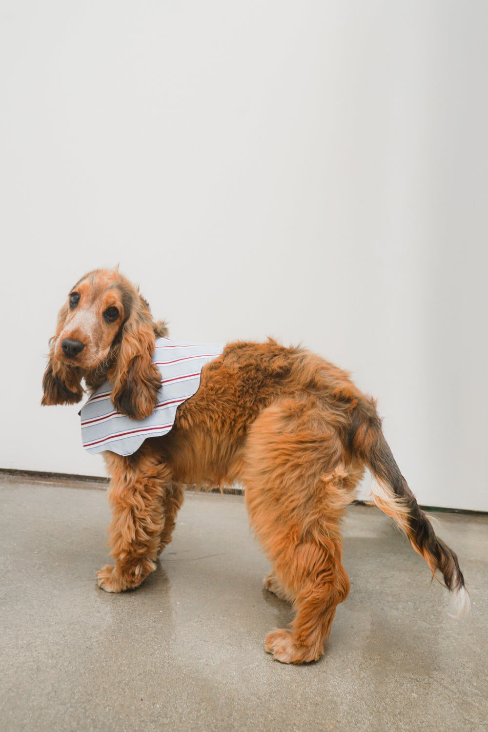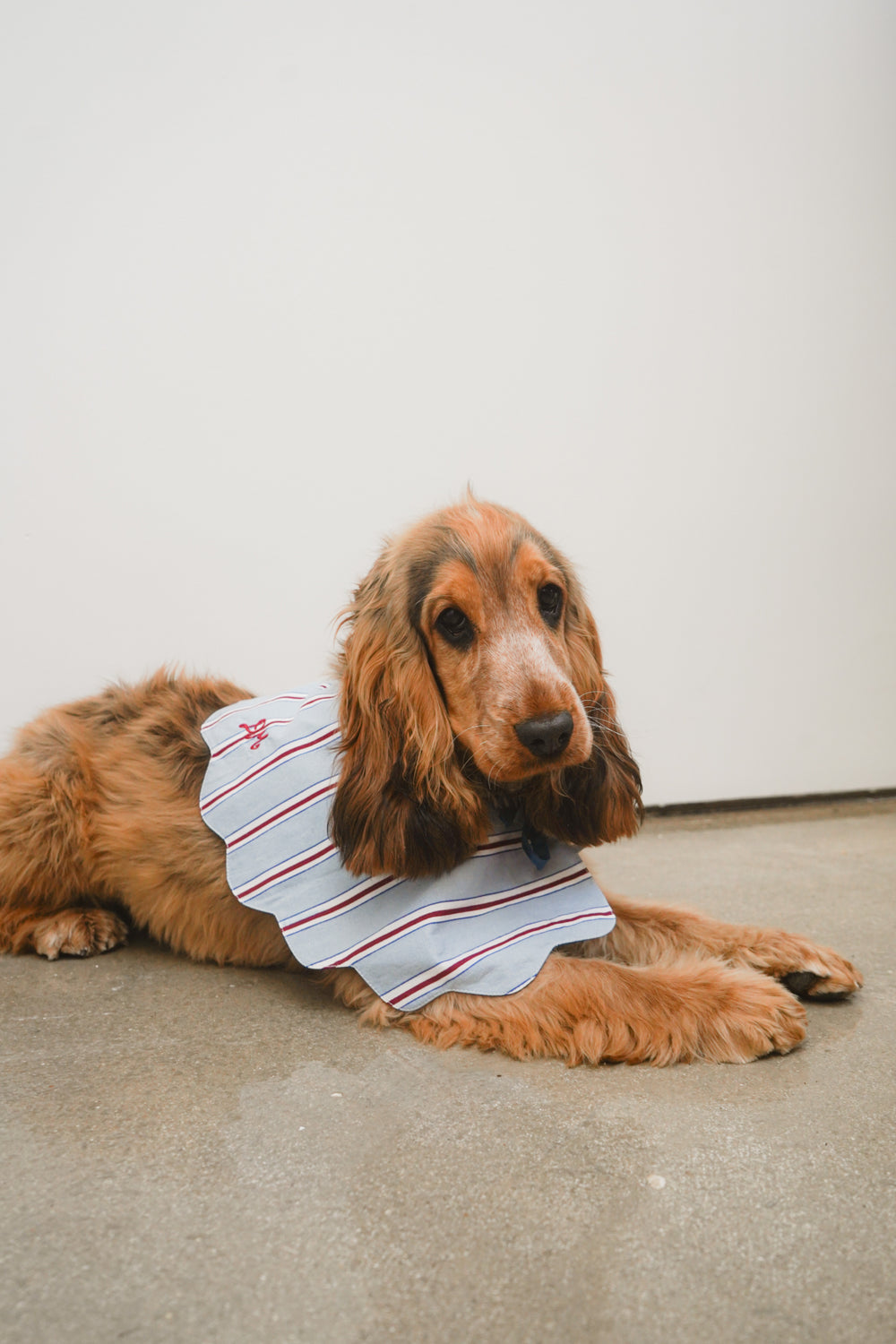 Designed in London, this striped adjustable dog collar features an embroidered DM detail for a distinctive touch. Measuring 25cm x45cm, it offers a secure and adjustable fit for your pet, combining practicality with a unique design for every walk.