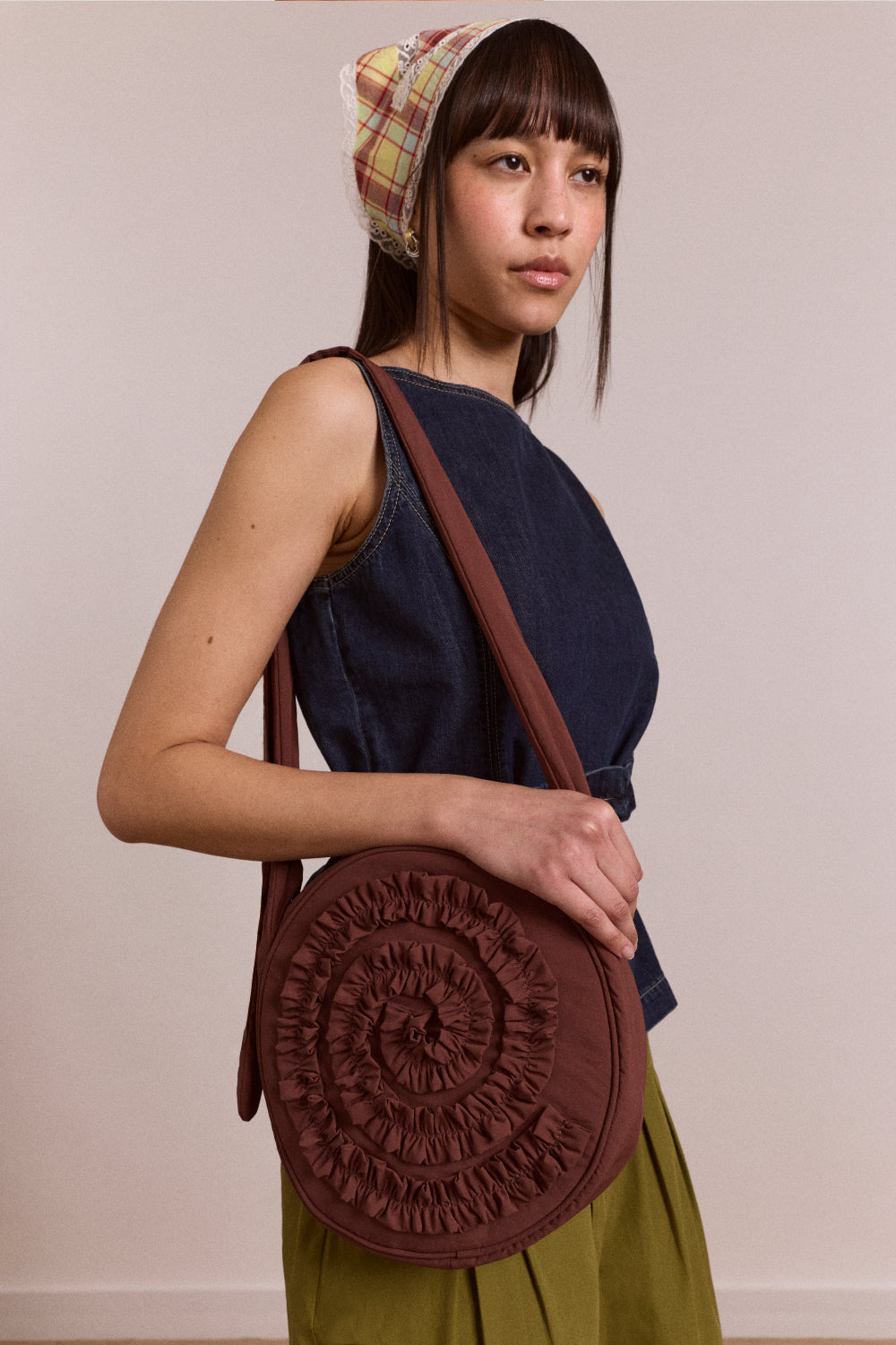 • Rae Circle Bag with Swirl Detail in Chocolate