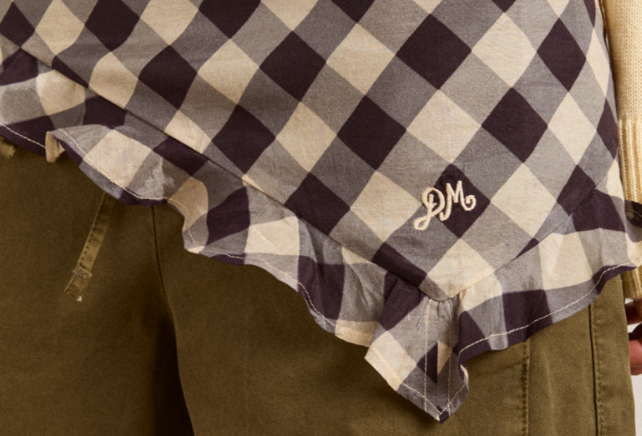 A versatile sheer headscarf in soft butter gingham, featuring Damson Madder’s signature embroidery. Wear it multiple ways; around the neck, as a headscarf, or as a belt for a subtle, stylish accent. Pair with matching DM clothing.