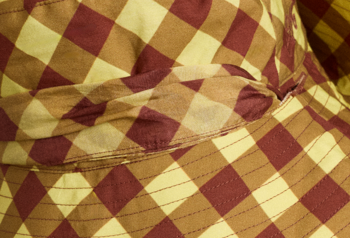 • Sunhat with removable tie in Chocolcate & Avocado Gingham