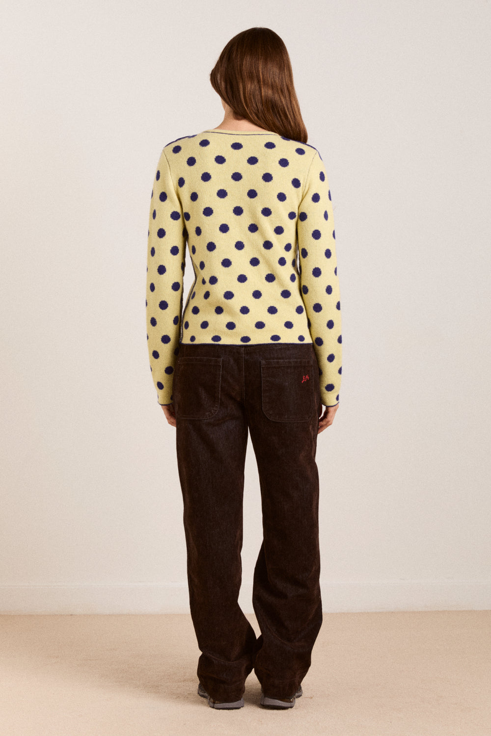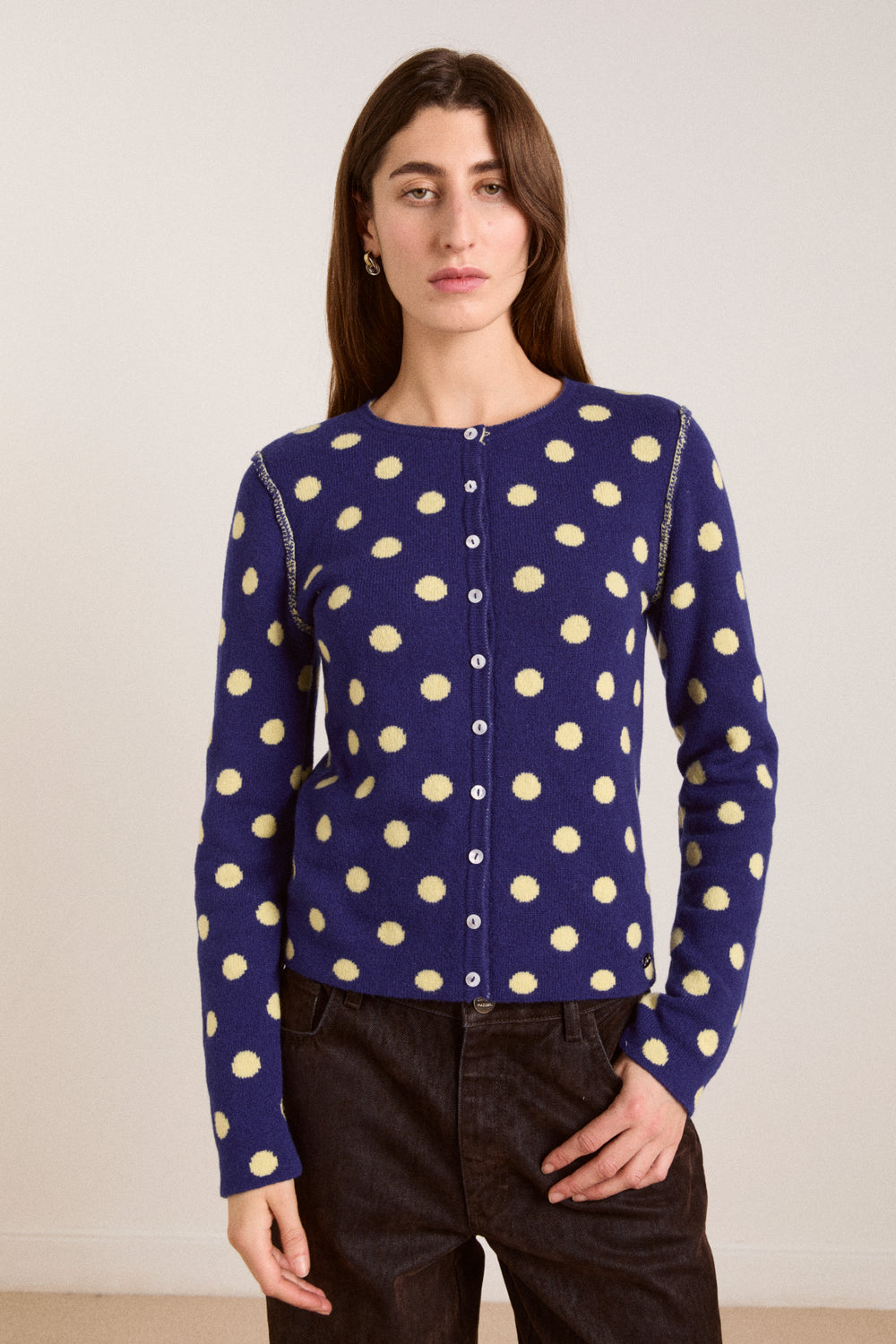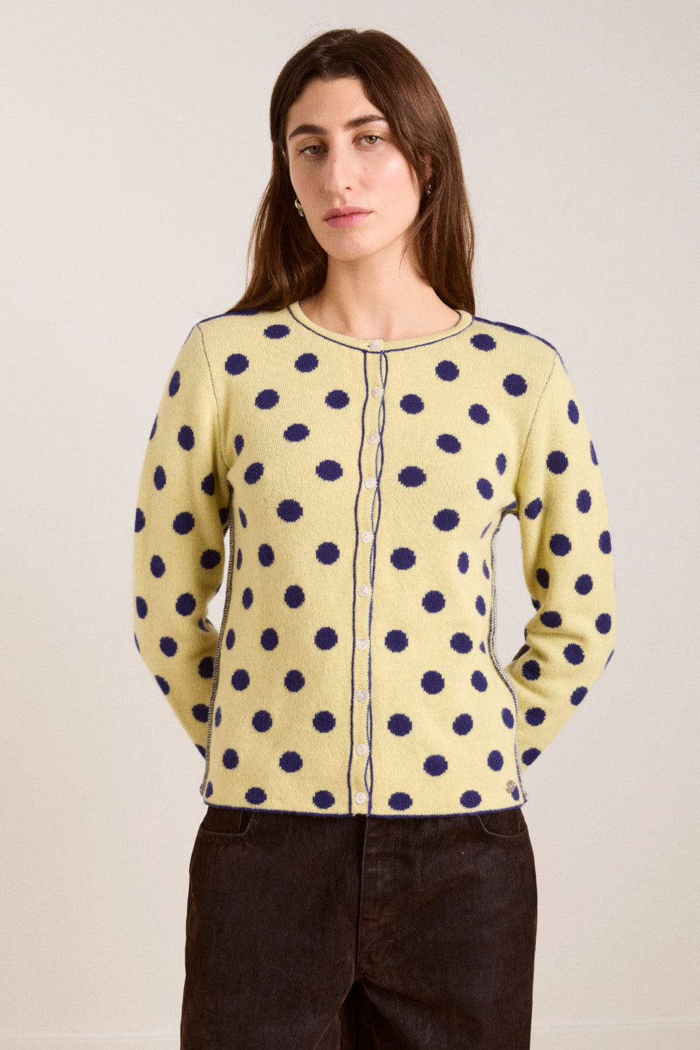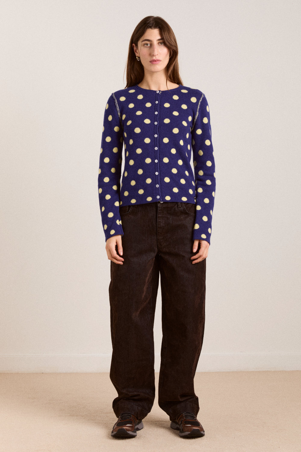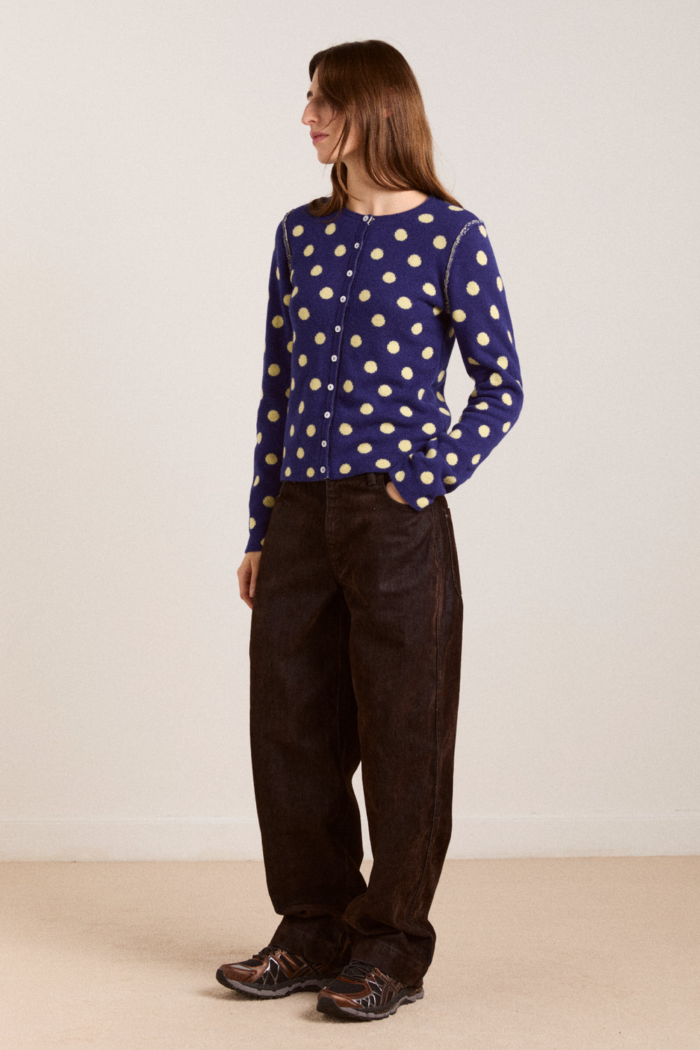 The Tabitha Merino Reversible Cardigan is crafted from 100% RWS Merino Wool and features an all-over spot design that’s made to be worn both ways. With its relaxed fit, crew neck, and classic button-d own front, it’s an easy wardrobe staple. Finished with a subtle metal DM branding tab for a refined touch.