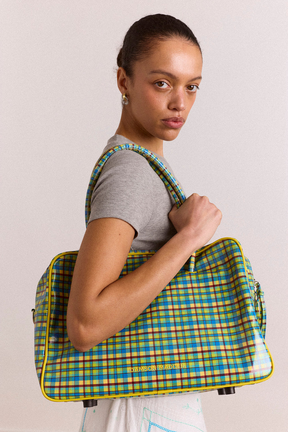The Truro Coated Holdall in Zesty Check is crafted from durable coated canvas, with eyelet detailing and a structured base with protective studs. Finished with an internal zip pocket and D-ring, it’s perfect for weekends away or carry-on.