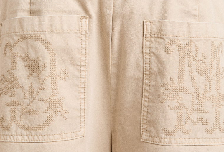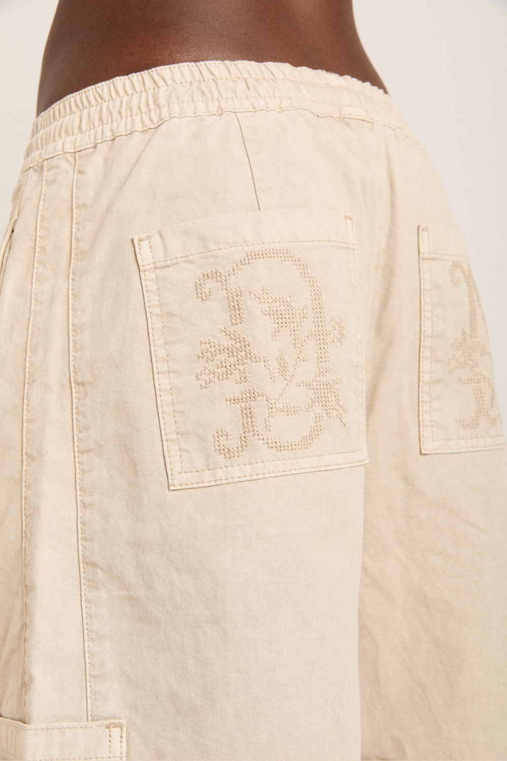 Our hero Felix Trousers have been reimagined in our new stone colourway. With our signature loose barrel fit, elasticated waist, side seaming details and custom DM embroidery on the back pockets, the Felix trousers will be on repeat season after season. Made from 100% cotton.