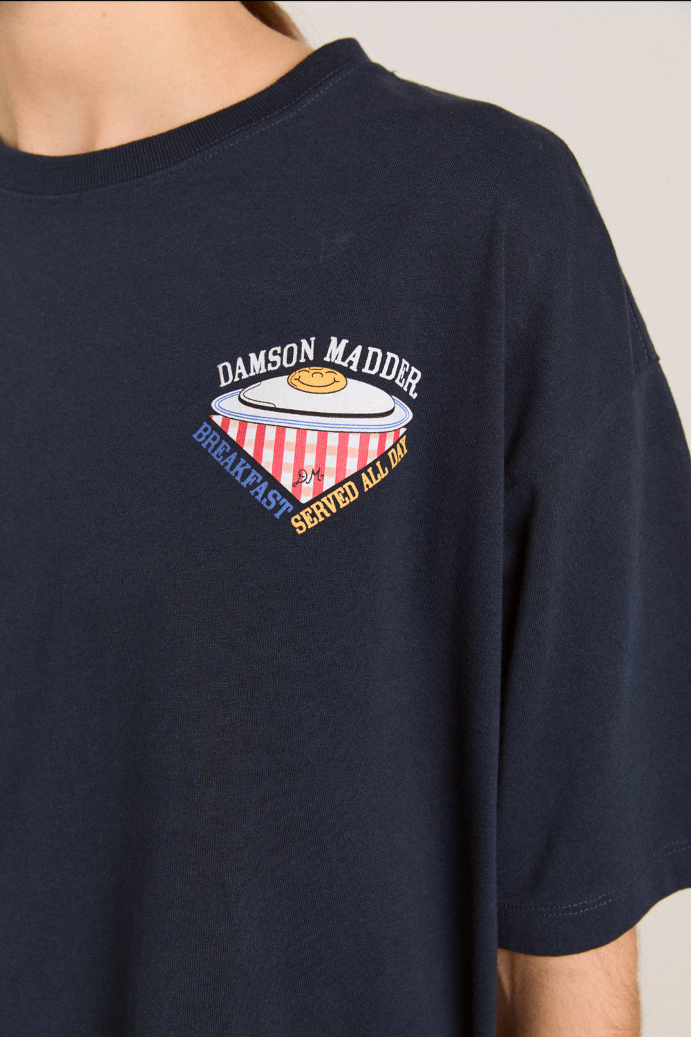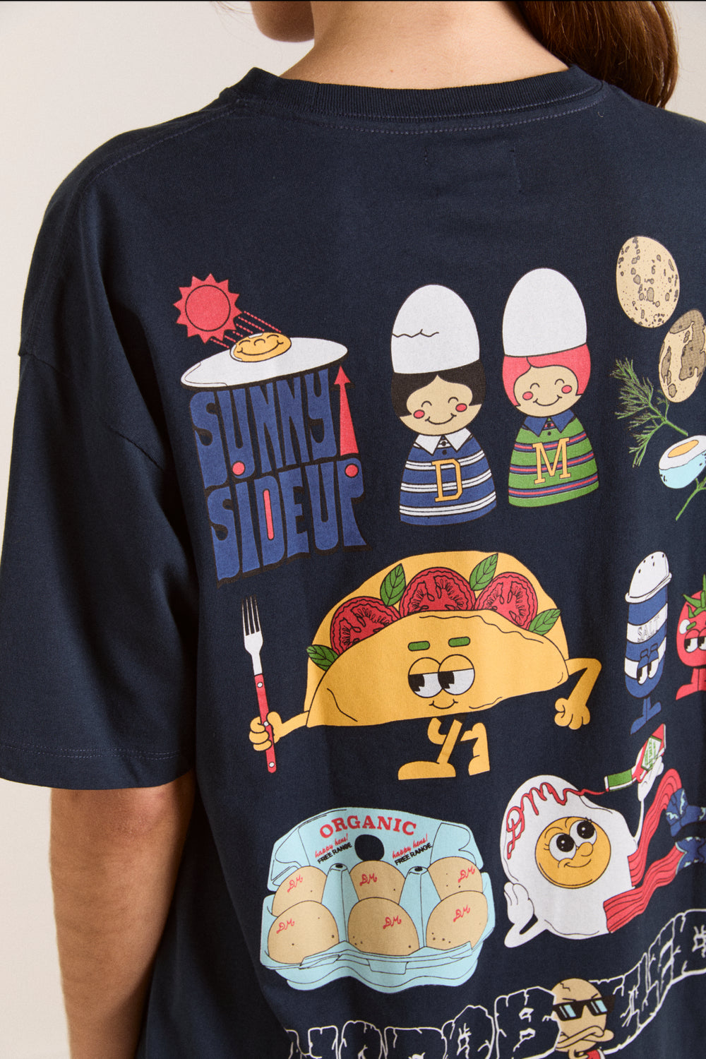 Crafted from 100% organic cotton, our All Day Breakfast Boyfriend Tee is the go-to piece you'll reach for every day. Designed with a relaxed, oversized fit, this tee features thoughtfully placed graphic prints on the front and back for a playful touch.