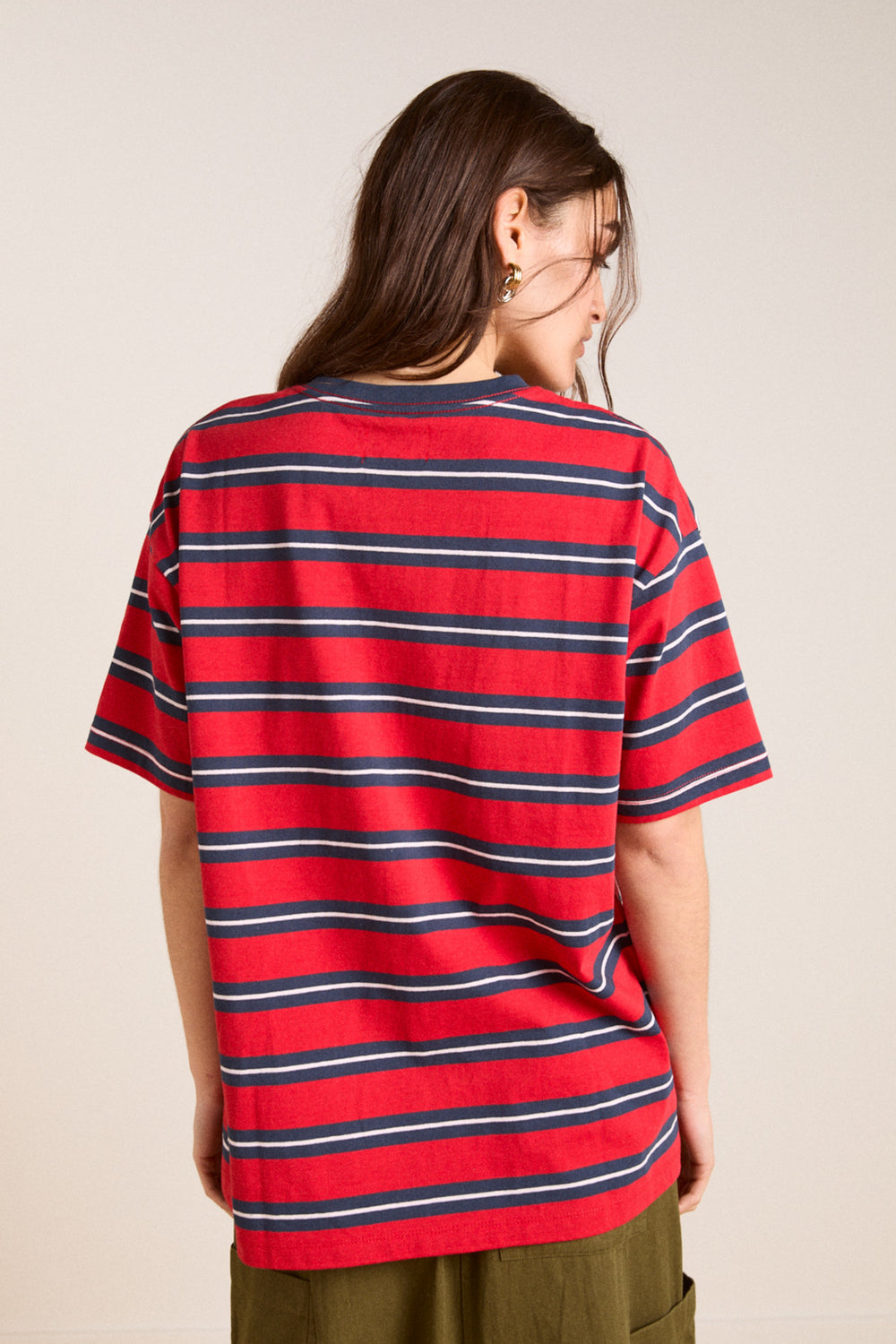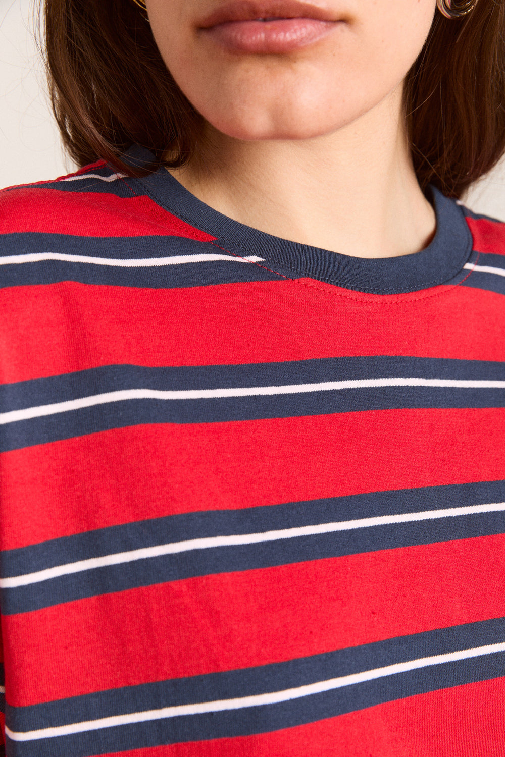 Made from 100% organic cotton, the Boyfriend Tee in red navy stripe is cut in our signature boyfriend fit for a relaxed look....