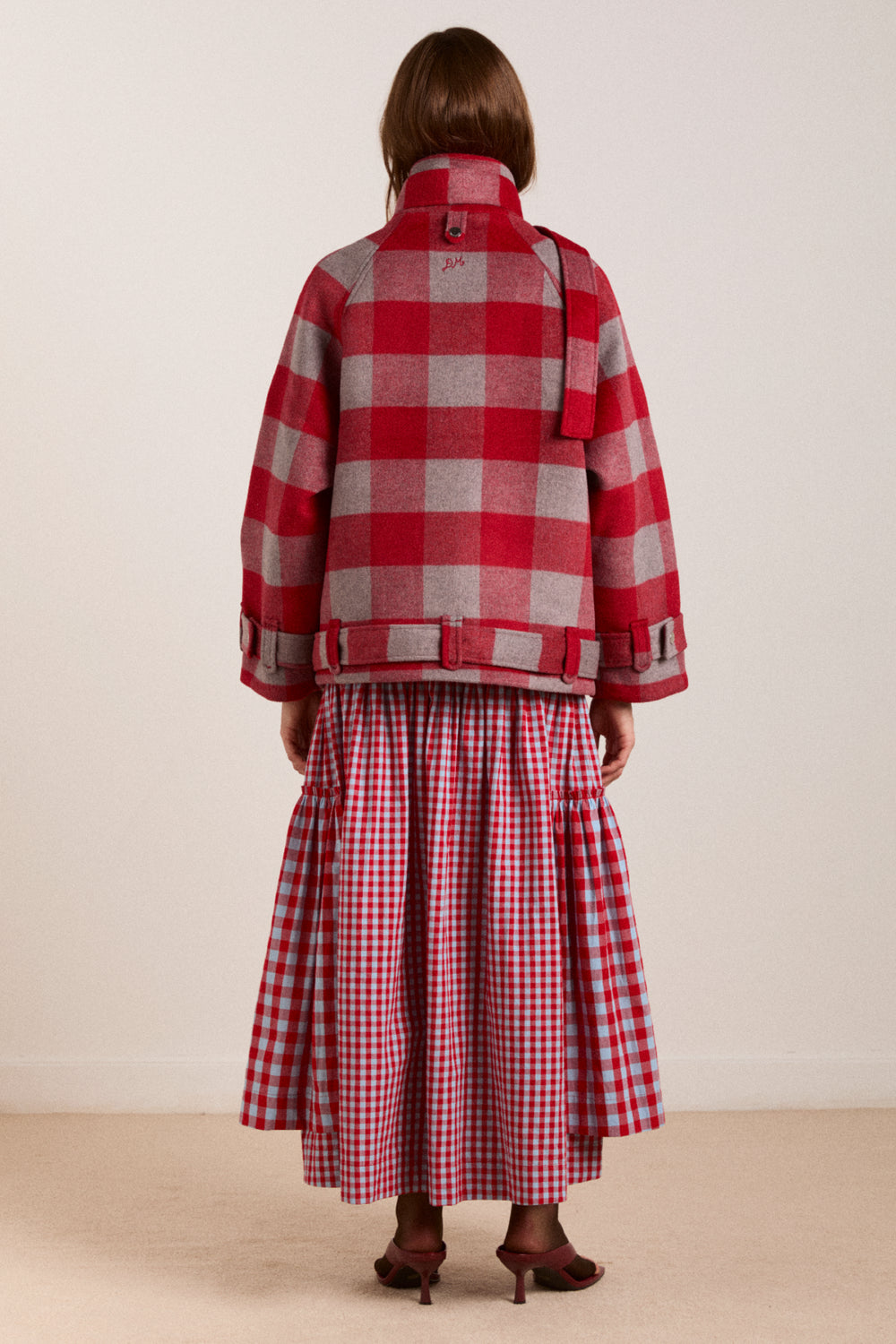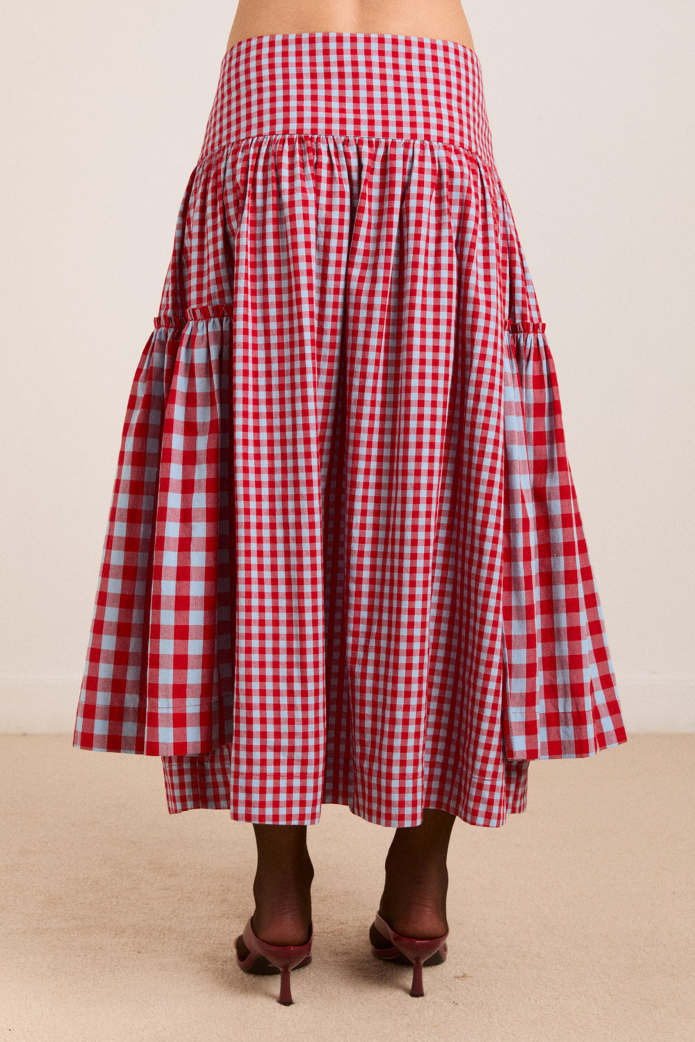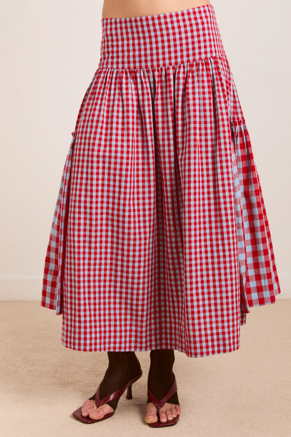 The Berta Midi Skirt brings a playful twist to classic gingham with mixed prints and soft side ruffle panels. Designed with a...