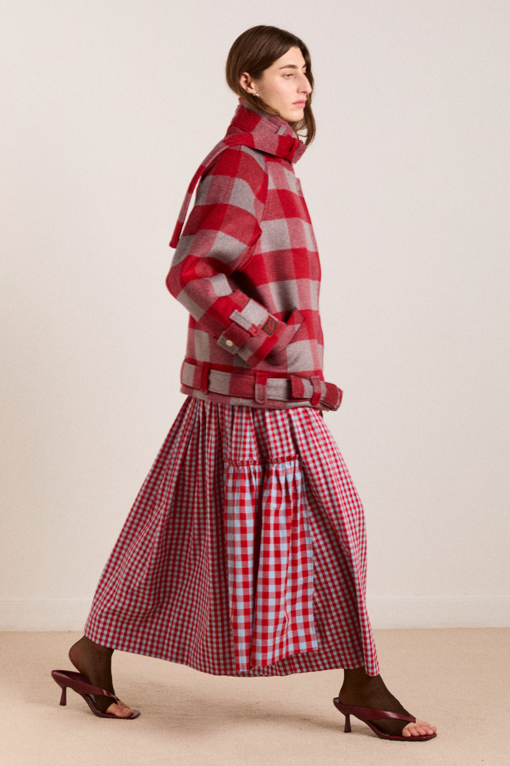 The Berta Midi Skirt brings a playful twist to classic gingham with mixed prints and soft side ruffle panels. Designed with a dropped waist and a clean silhouette, it features an invisible zipper at the left side for a smooth fit. Cut to a midi length with a regular fit, it’s crafted from 100% organic cotton for all-day comfort.