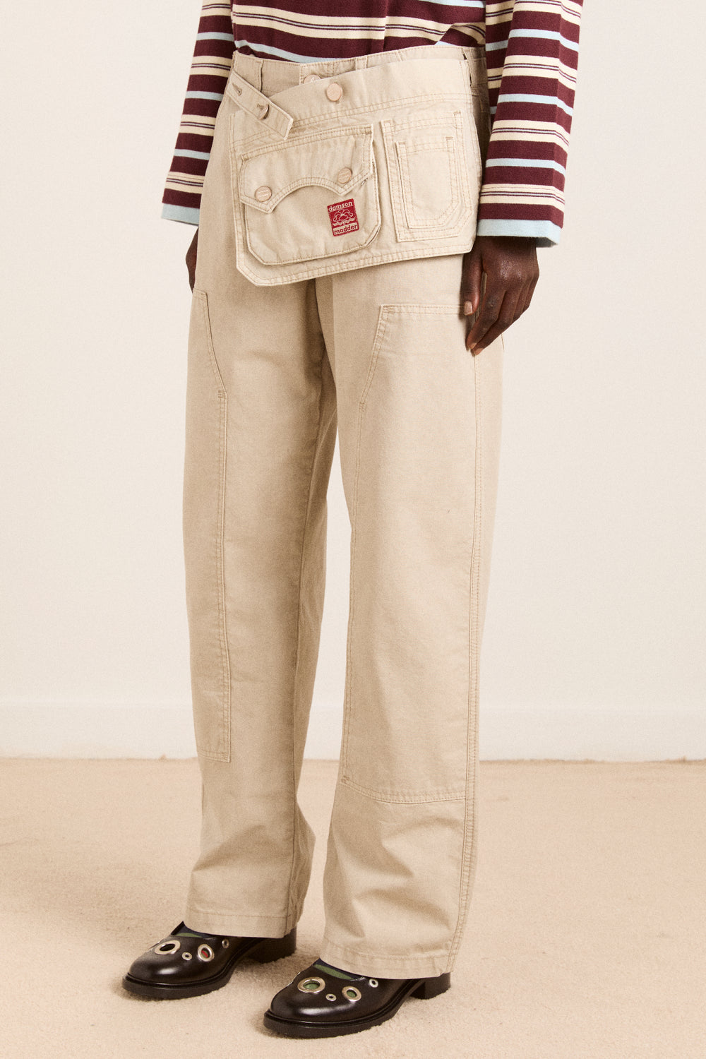 Utility meets versatility in these straight-leg trousers, designed with knee panel detailing and signature zig-zag stitching. A standout feature is the detachable multi-pocket belt bag, which can be worn crossbody, over the shoulder, or styled as a belt bag - and finished with a DM branded woven patch for a subtle touch.