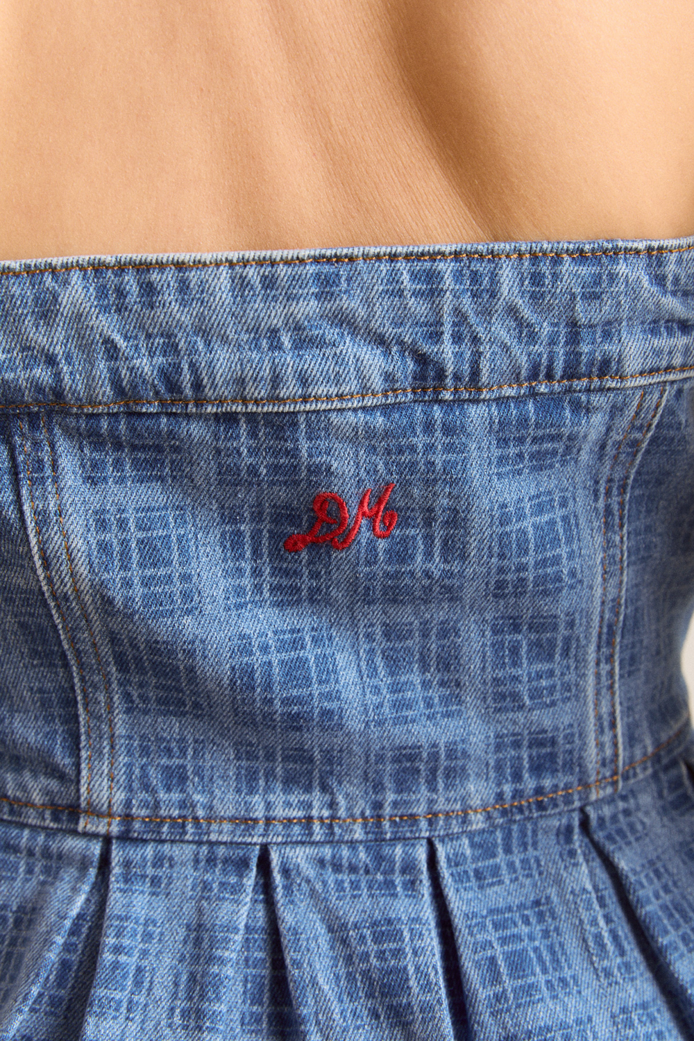 Expertly crafted using waterless laser technology, the Eloise Denim Top makes a statement in our laser check print. Featuring a peplum hem, strapless neckline and front shank opening, it's the perfect top to elevate any look. Pair with our matching Tovie Jeans for a head to toe look.