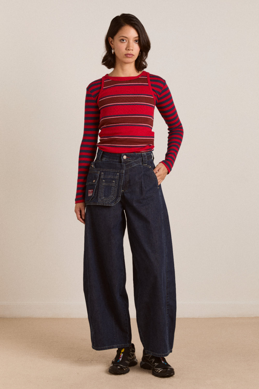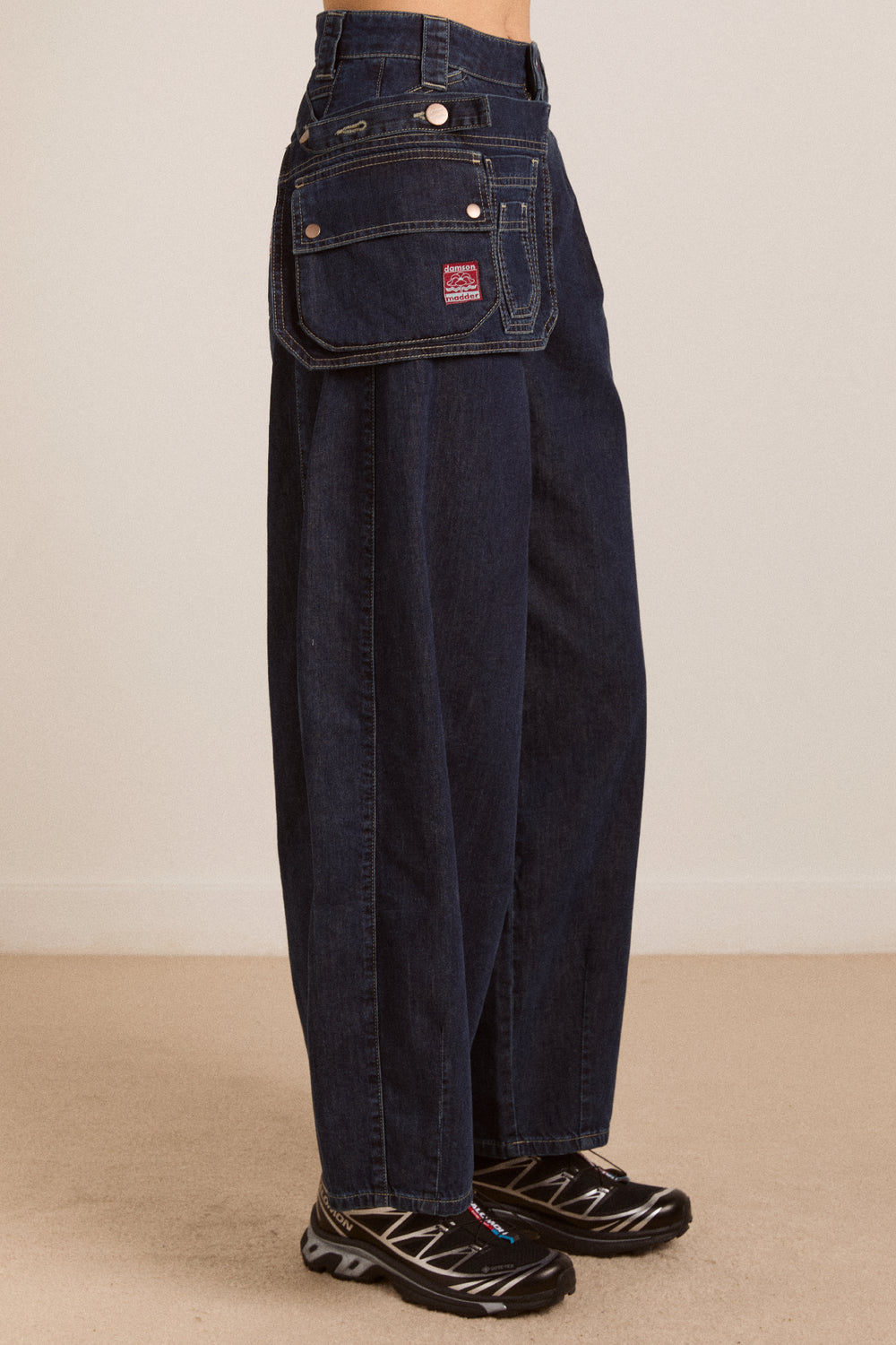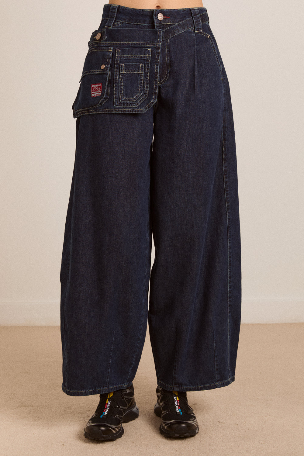 Cut from soft, fluid denim in 100% organic cotton, this mid-waist barrel jean features contrast stitching and a detachable workwear-inspired bag with pocket detailing, it’s designed for both form and function. Made in Türkiye. Select your regular size for the ideal fit.