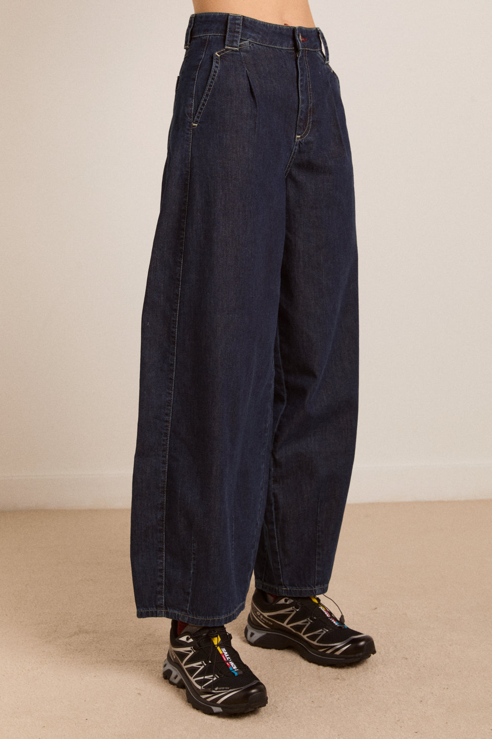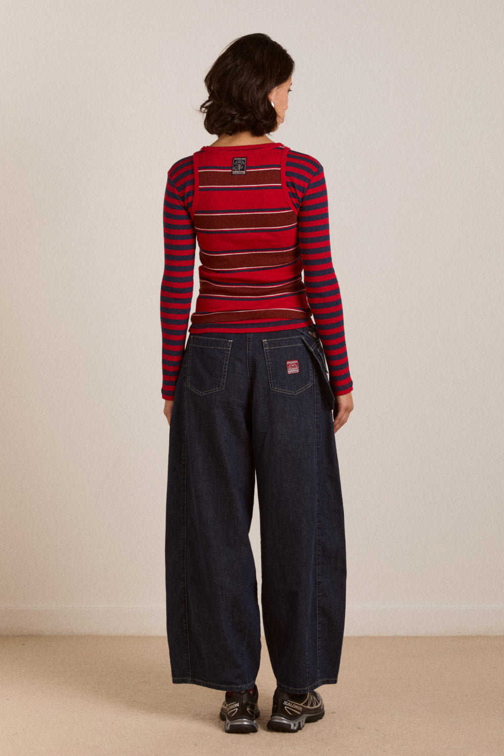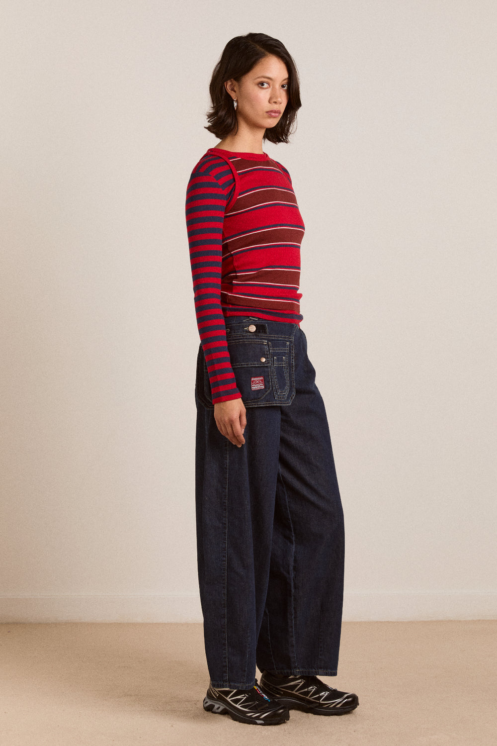 Cut from soft, fluid denim in 100% organic cotton, this mid-waist barrel jean features contrast stitching and a detachable workwear-inspired bag with pocket detailing, it’s designed for both form and function. Made in Türkiye. Select your regular size for the ideal fit.
