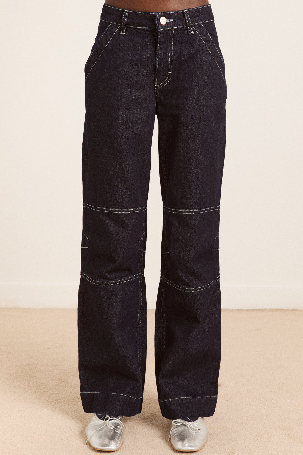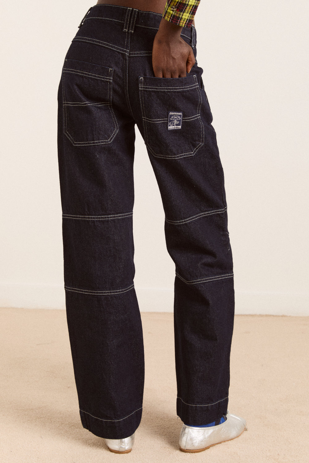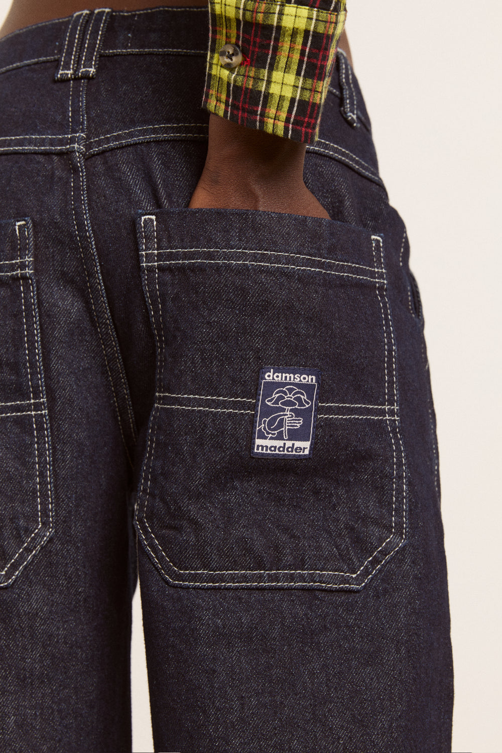 Meet the Fliss Jeans in indigo, expertly crafted from a blend of organic cotton and recycled cotton. The Fliss are mid rise, with a relaxed straight leg with oversized back pockets. Finished with knee seam detailing and a DM woven branded tab on the back pocket. Pair with our matching Alba Shirt for a complete head-to-toe look.