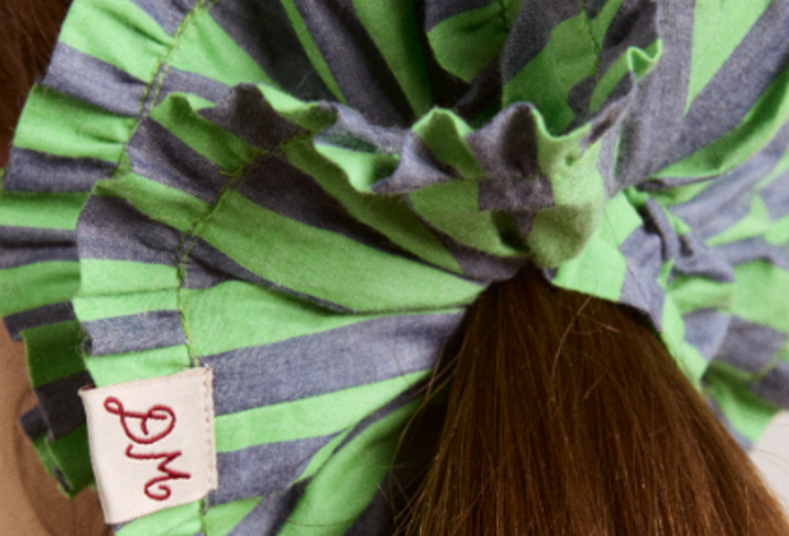 frill edge scrunchie - navy pop green stripe