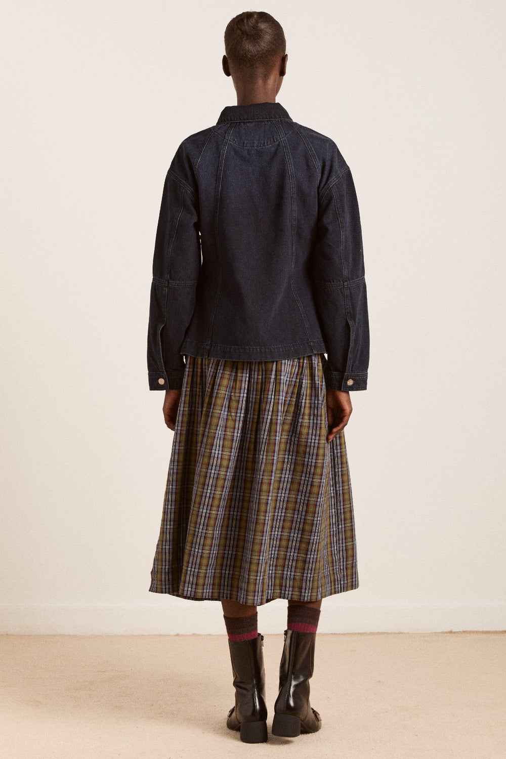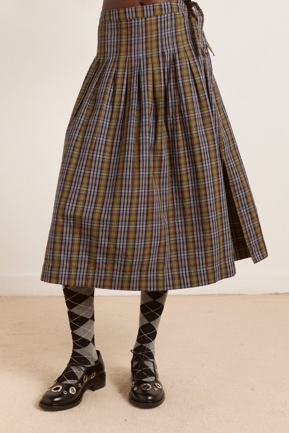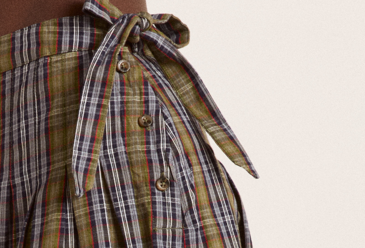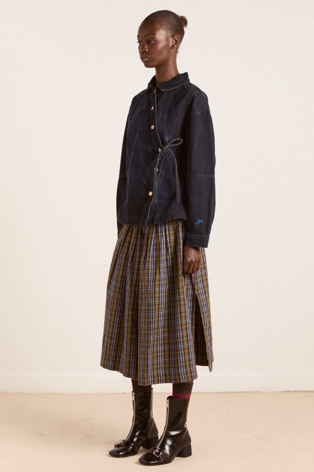 The Josie midi-length skirt combines effortless style with thoughtful details. Featuring a pleated waist panel for a flattering silhouette, it fastens discreetly with buttons on the left side, accompanied by a delicate tie detail for a refined finish. Crafted from 100% organic cotton, it offers both comfort and ease, making it a versatile addition to your wardrobe.