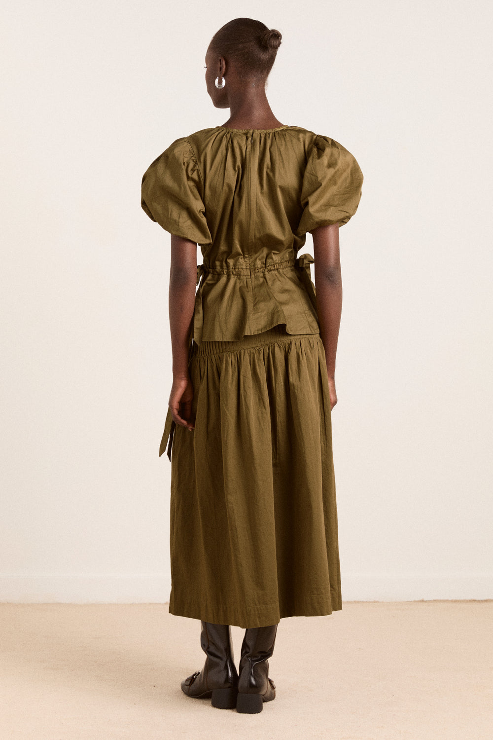 Effortlessly floaty and feminine, meet the Josie Midi Skirt in olive cotton satin. Crafted from 100% organic cotton, the Josie features a pleated waist panel. Easy wearing, the Josie can be dressed up or down. Pair with the matching Hadley Blouse for ultimate impact.