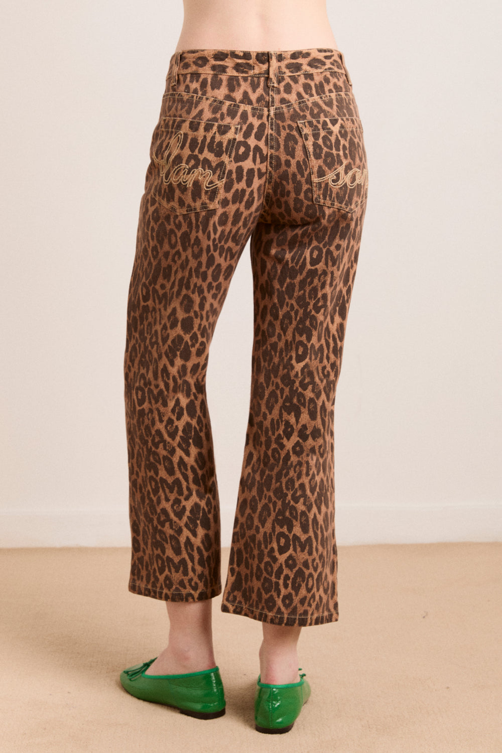 Introducing our Kenny Twill Trouser, a cropped kicked leg style made in a comfort stretch denim. Designed in London, they feature our signature all over custom DM leopard print, and signature DM embroidery on the back pockets.