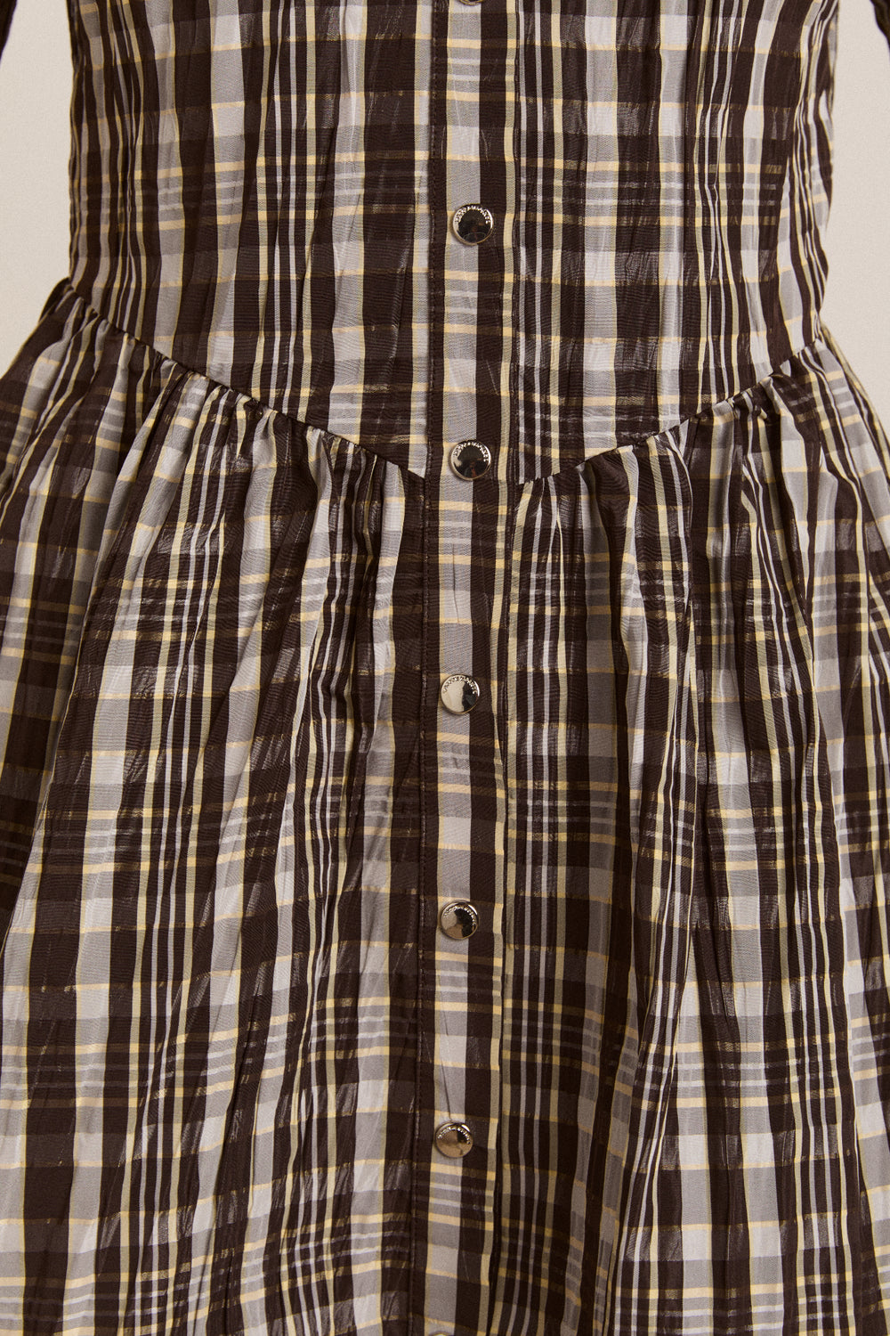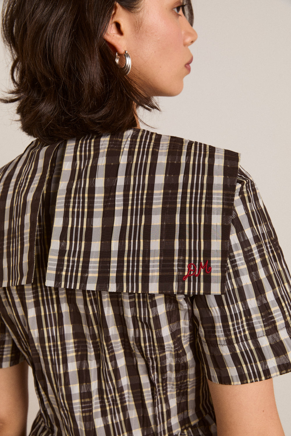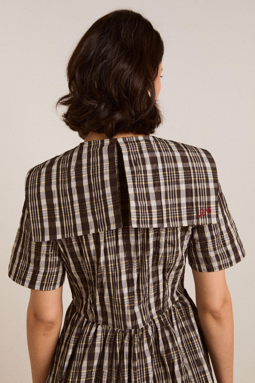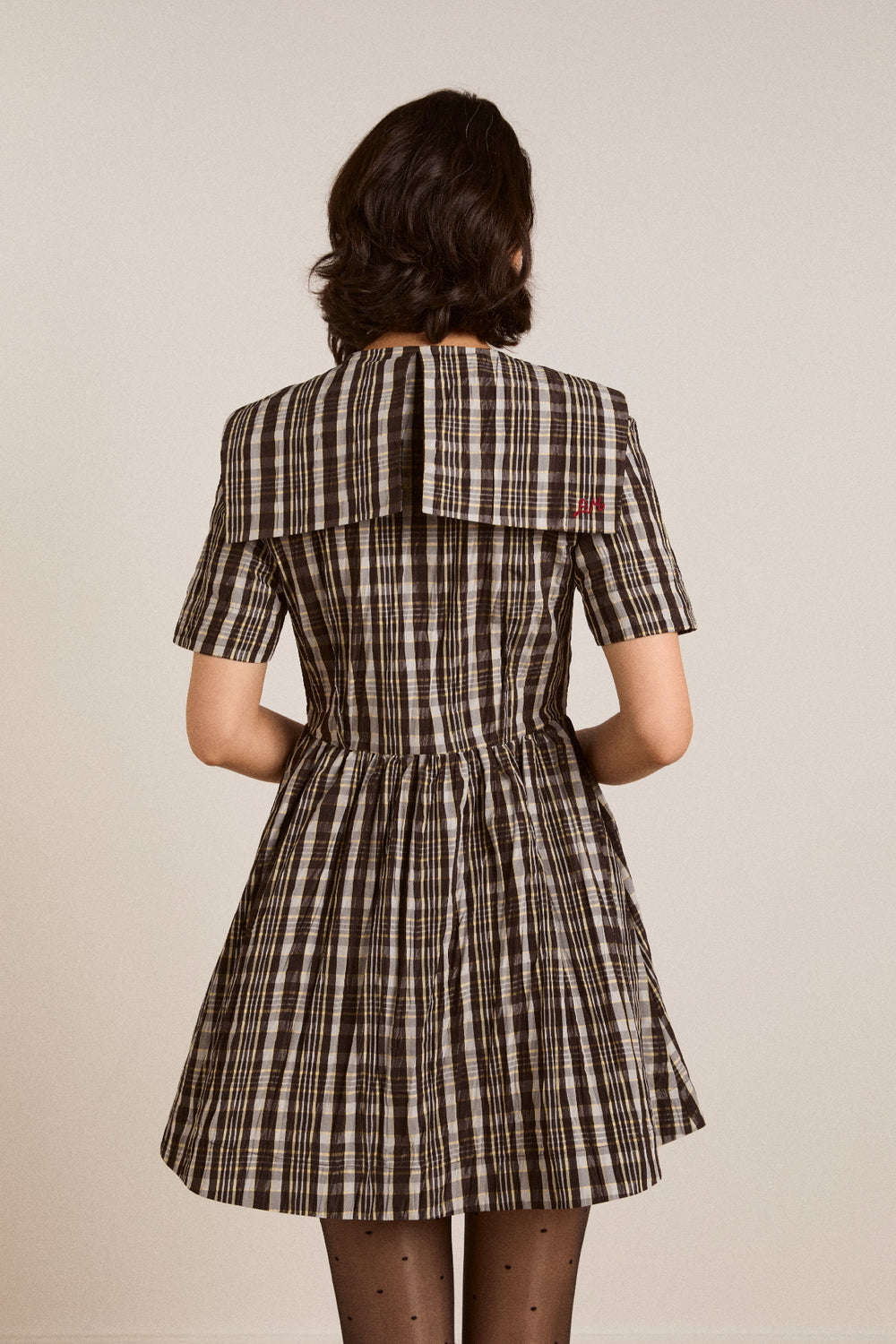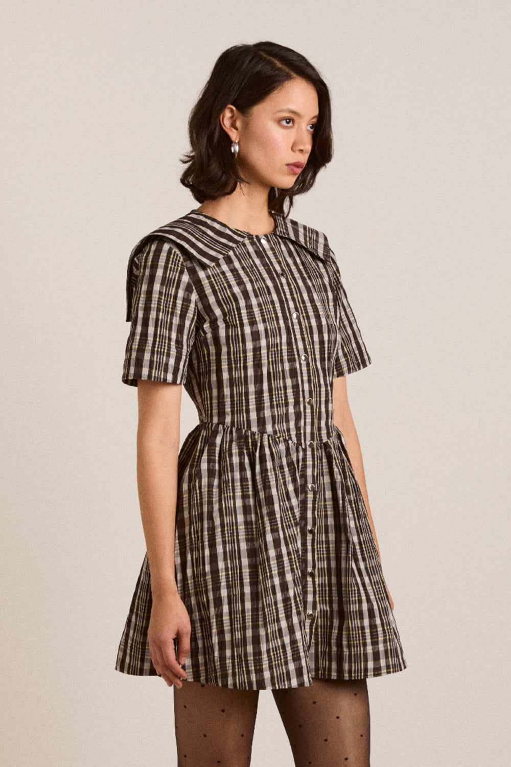 In yellow check taffeta with an oversized collar, the Miley Mini Dress brings playful polish to every day. Featuring popper fastenings down the front, short sleeves, and a flattering mini length.
