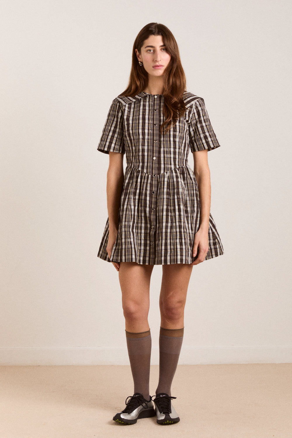 In pink check taffeta with an oversized collar, the Miley Mini Dress brings playful polish to every day. Featuring popper fas...