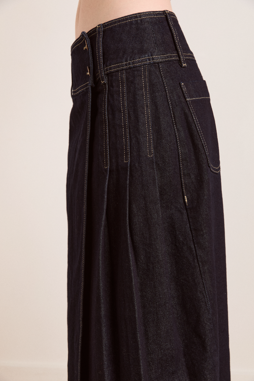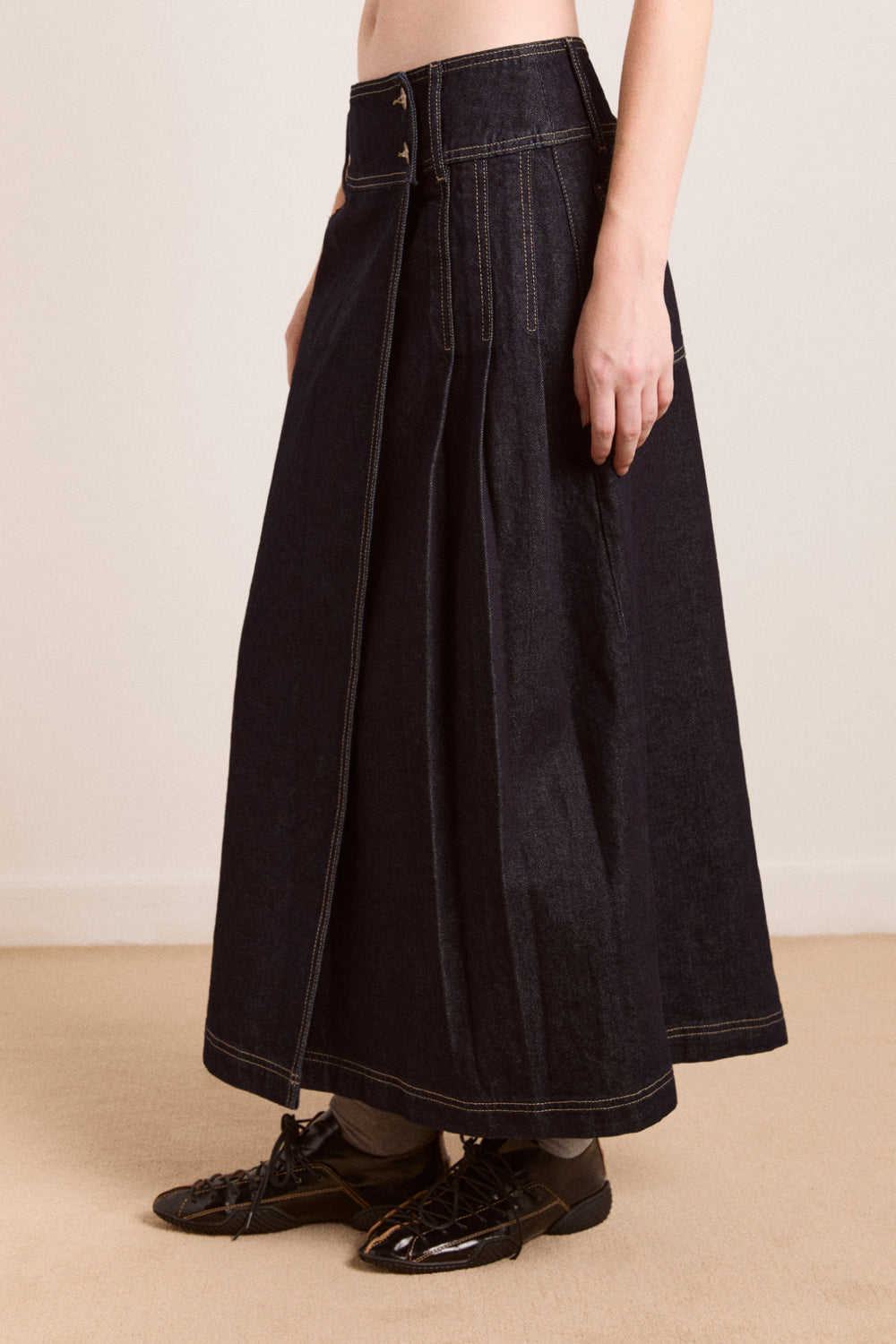 Our Raye skirt celebrates subtlety though its stitching, rivets and other details. Work with a 90s silhouette by pairing it with a fitted tee, or reach for an oversized top to achieve a more contemporary look.