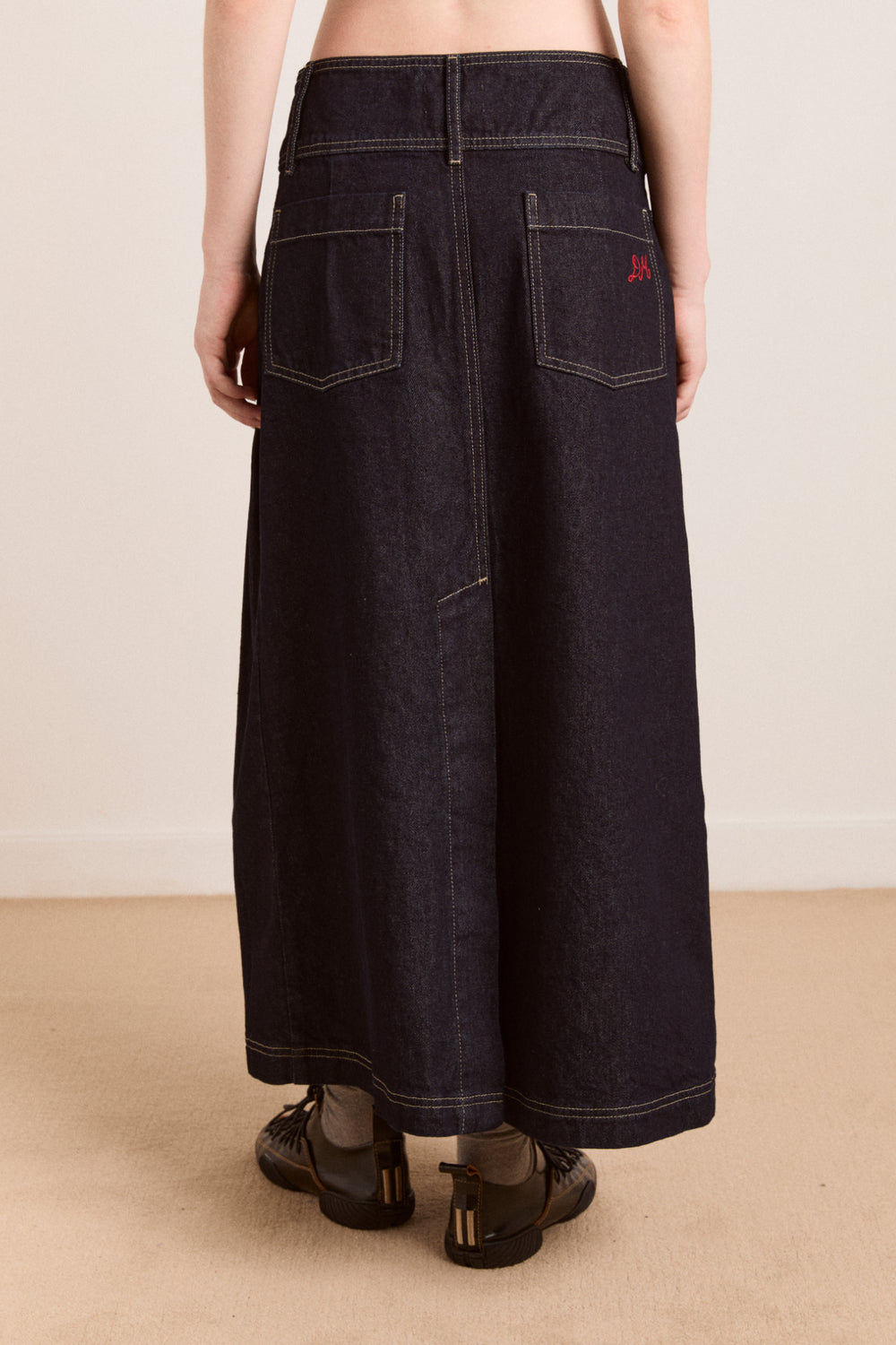 • "DM" embroidered on back pocket