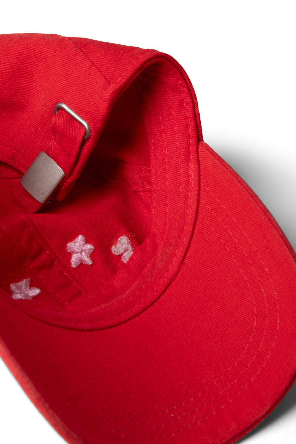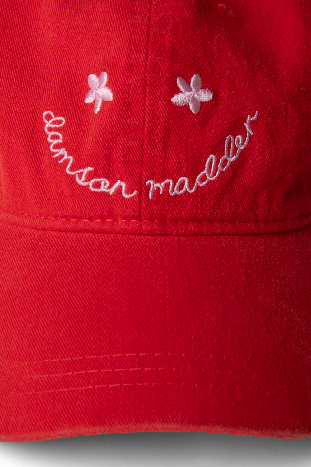 Our best-selling Smiley Cap is back in a new washed red fabric. Featuring custom pink DM embroidery detailing on the front an...