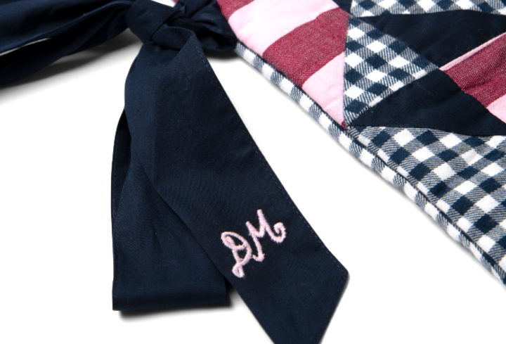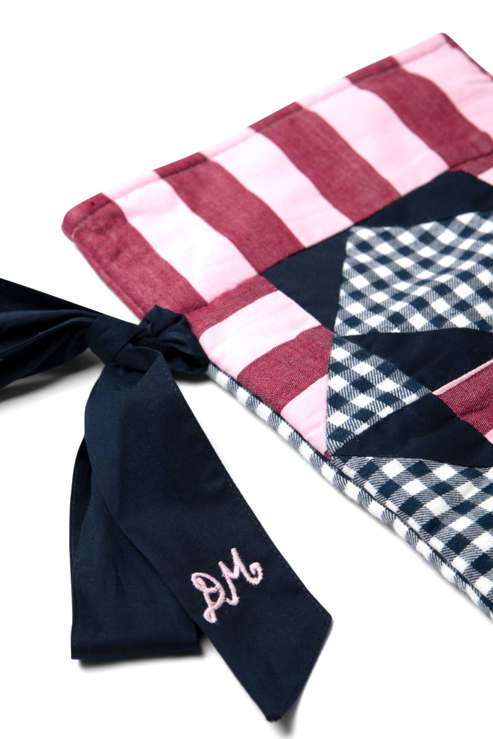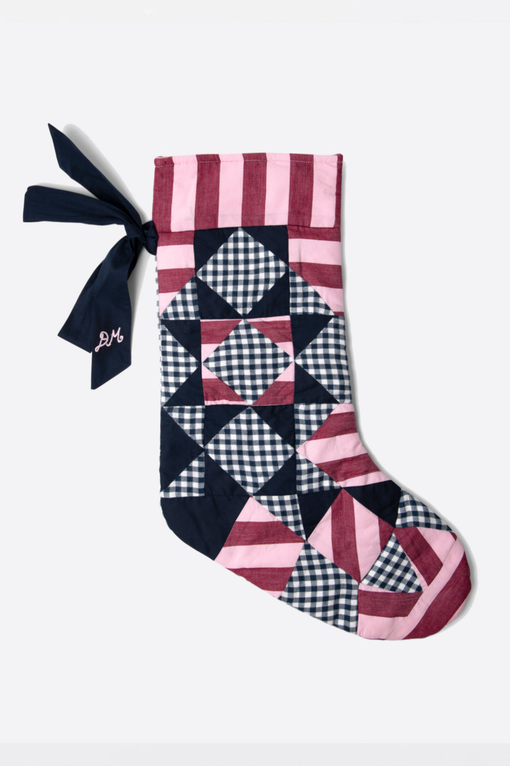 Celebrate the magic of the festive season with Damson Madder and bring timeless holiday traditions to life with our signature Christmas stocking.A standout piece you'll return to year after year, it’s perfect for hanging at the foot of the bed or displaying by the tree to add maximum festive charm.Carefully crafted from perfectly placed patchwork fabrics, each stocking is made using offcuts from our autumn/winter Damson Madder prints, giving new life to beautiful materials while capturing the spirit of the season.Finished with our signature DM cursive embroidery on the bow, this stocking is a joyful, considered addition to your holiday decor. Measuring L 84cm X W 35cm.