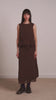 A versatile midi skirt with layered elegance. Designed with a frill and elasticated waistband, tie waist, double layers with a sheer underlayer, and panelled seams. Adjustable hem ties and practical side and back pockets make it both stylish and functional.
