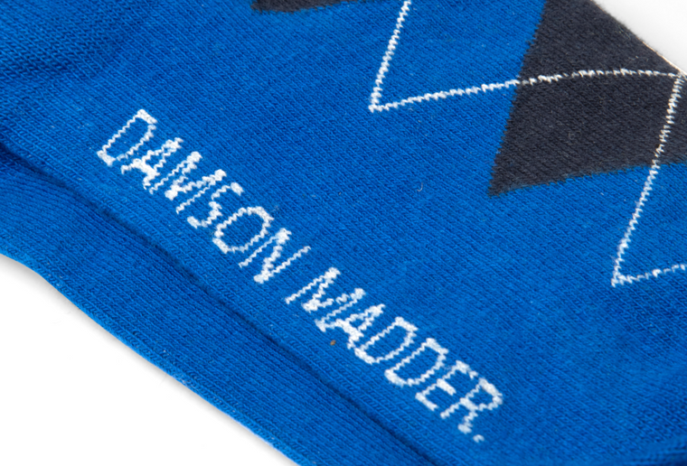 Meet our signature calf length socks in cobalt/grey argyle. Crafted from 75% organic cotton, 23% nylon, and 2% elastane, offering a perfect blend of comfort, durability, and a touch of stretch. The soft, organic cotton ensures a gentle feel against the skin, while the nylon and elastane contribute to enhanced flexibility and shape retention.