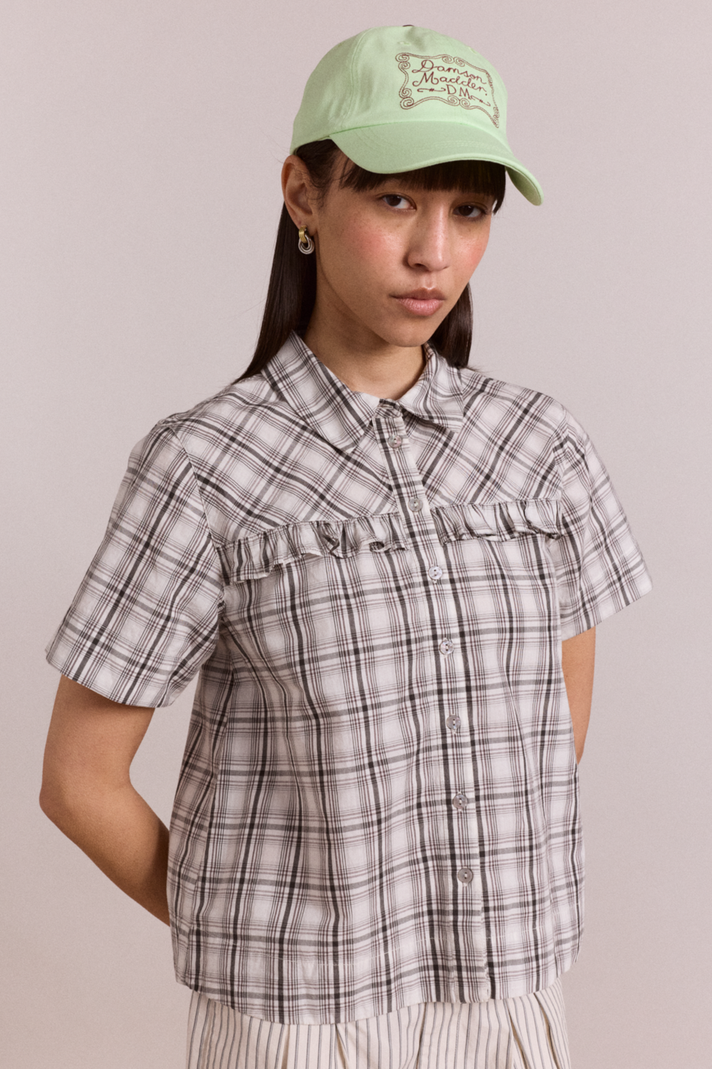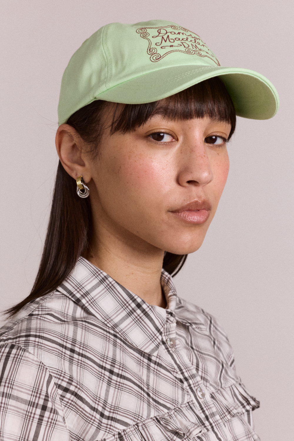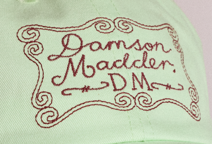 An easy everyday accessory with signature detailing. This adjustable six-panel cap comes in a mint shade with contrast piping and branding. Finished with border embroidery for a playful DM touch.