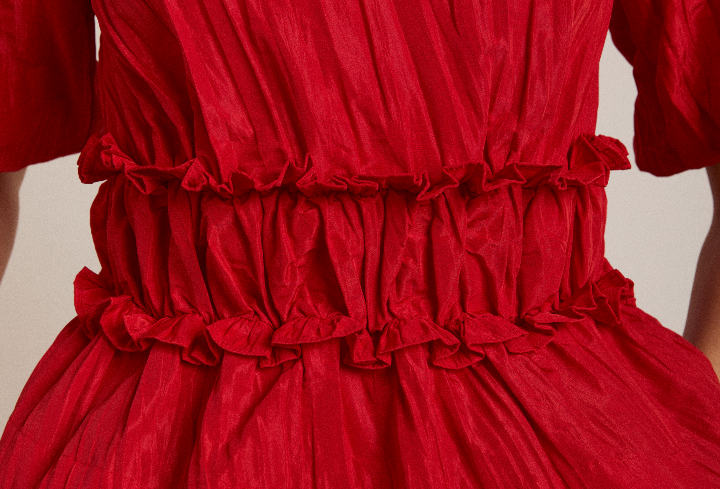 Damson Madder was born out of a desire to make exciting designs, responsibly. Run by a small, proudly female-led team from our studio in North London, we release limited collections of around 15-35 pieces per drop, and we only make what we think we will sell; minimising waste and ensuring excess stock doesn’t end up in landfill. Unlike our approach to production, our design handwriting often takes a more-is-more approach, making garments that fit and flatter; each with a unique detail or sign off that makes every piece feel special. Our garments are made to be worn again, and again (and again!)