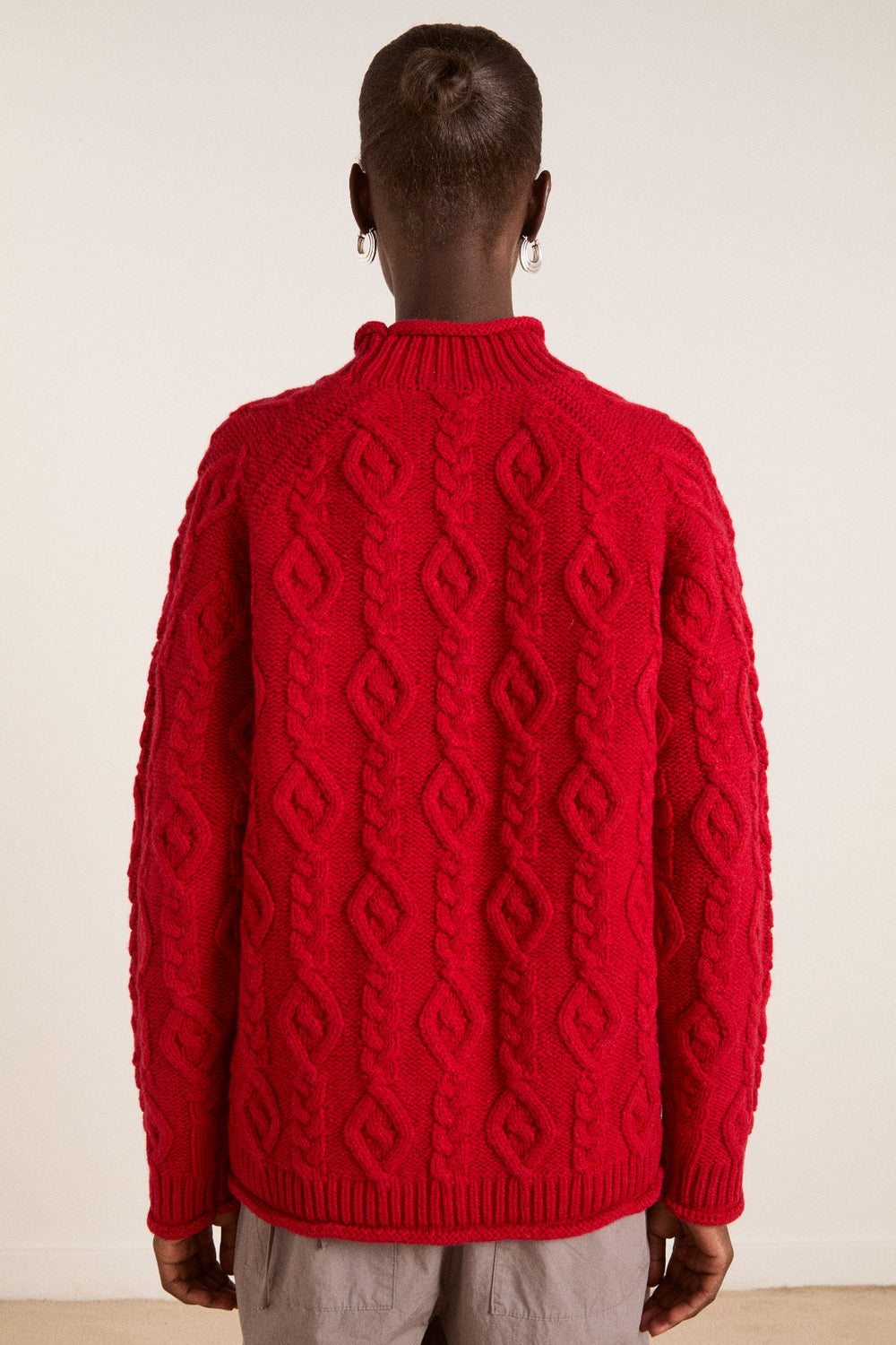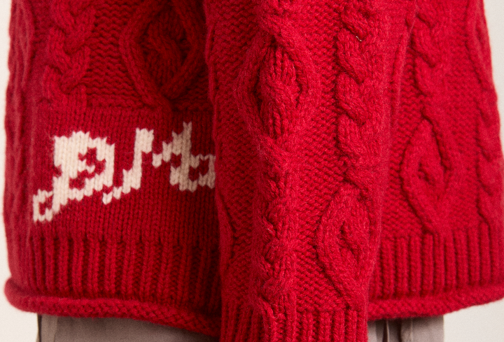 This chunky cable knit jumper brings effortless comfort with its oversized fit and cozy texture. Made from 100% certified responsible wool standard Wool, it’s finished with a subtle DM motif at the hem. A quiet nod to detail in a timeless winter staple.
