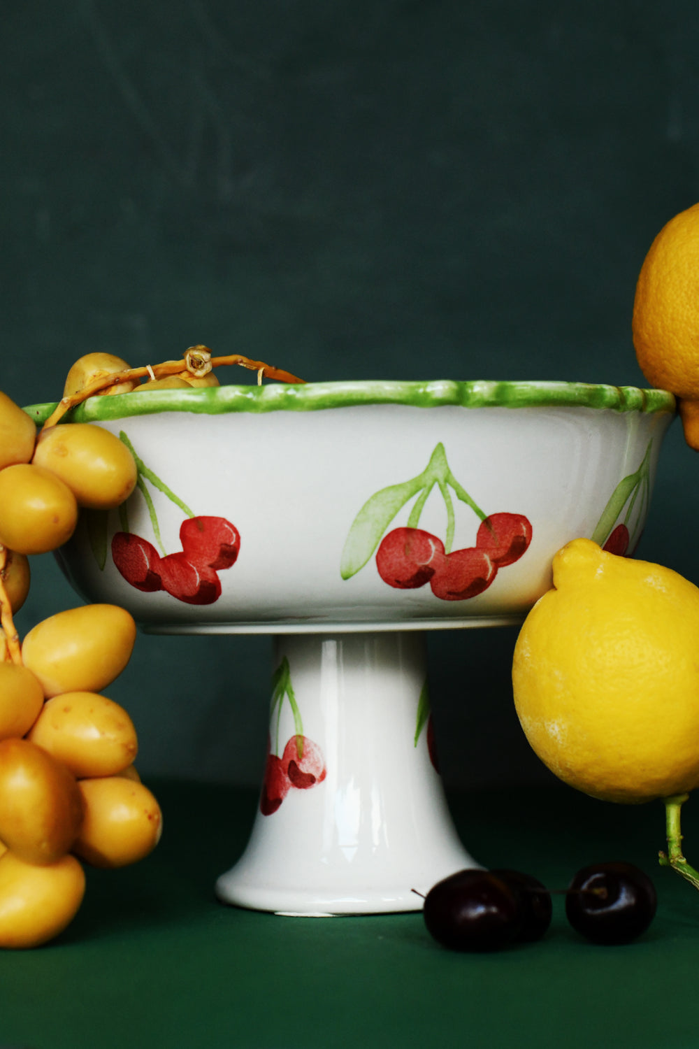 hand painted cherry frilly platter - checkhand painted cherry frilly platter - check