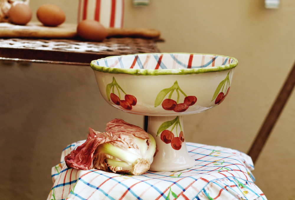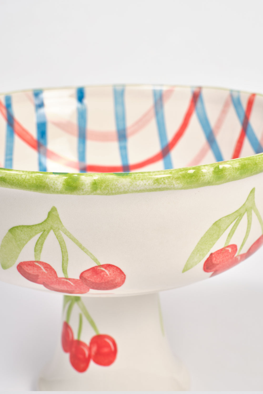 A beautifully crafted centrepiece, the Hand-Painted Frilly Pedestal Bowl is designed in London with intricate hand-painted detailing. Featuring an elegant pedestal base and a distinctive frilled edge, this ceramic bowl is adorned with a classic check print and a delicate cherry border. Measuring 22 x 16 cm, it’s perfect for serving or display. Please note all ceramics can only be shipped within the UK.