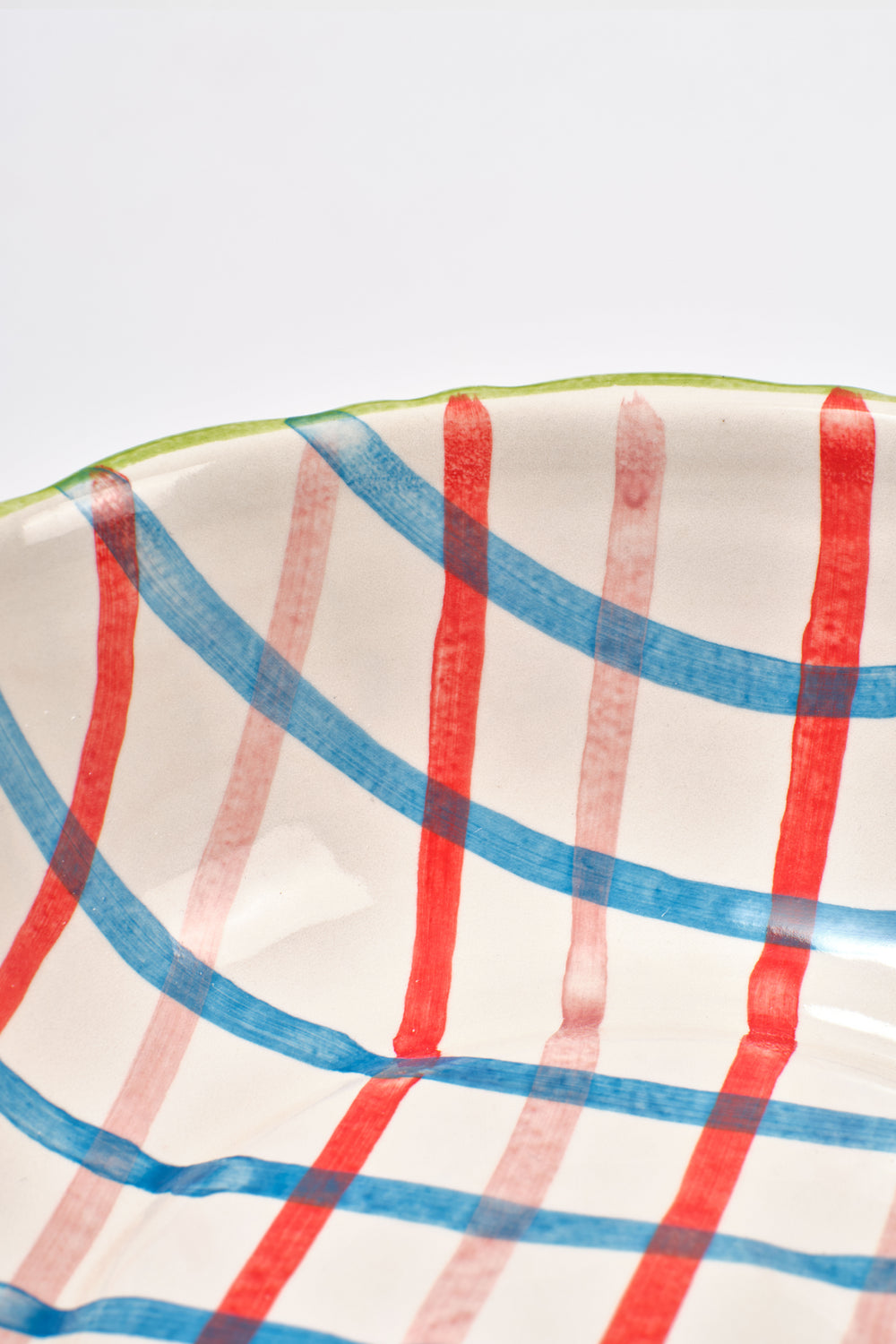 hand painted frilly pedestal bowl - check