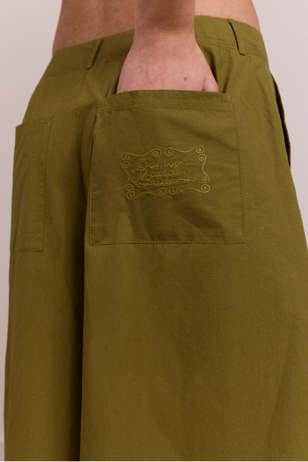 Relaxed yet refined, the Jadey Culottes feature a wide-leg silhouette with soft pleat detailing through the front for effortless movement. Designed with a zip fly and horn button fastening, they’re finished with delicate double lace inserts at the leg and subtle DM swirl embroidery on the back pocket for a signature touch.