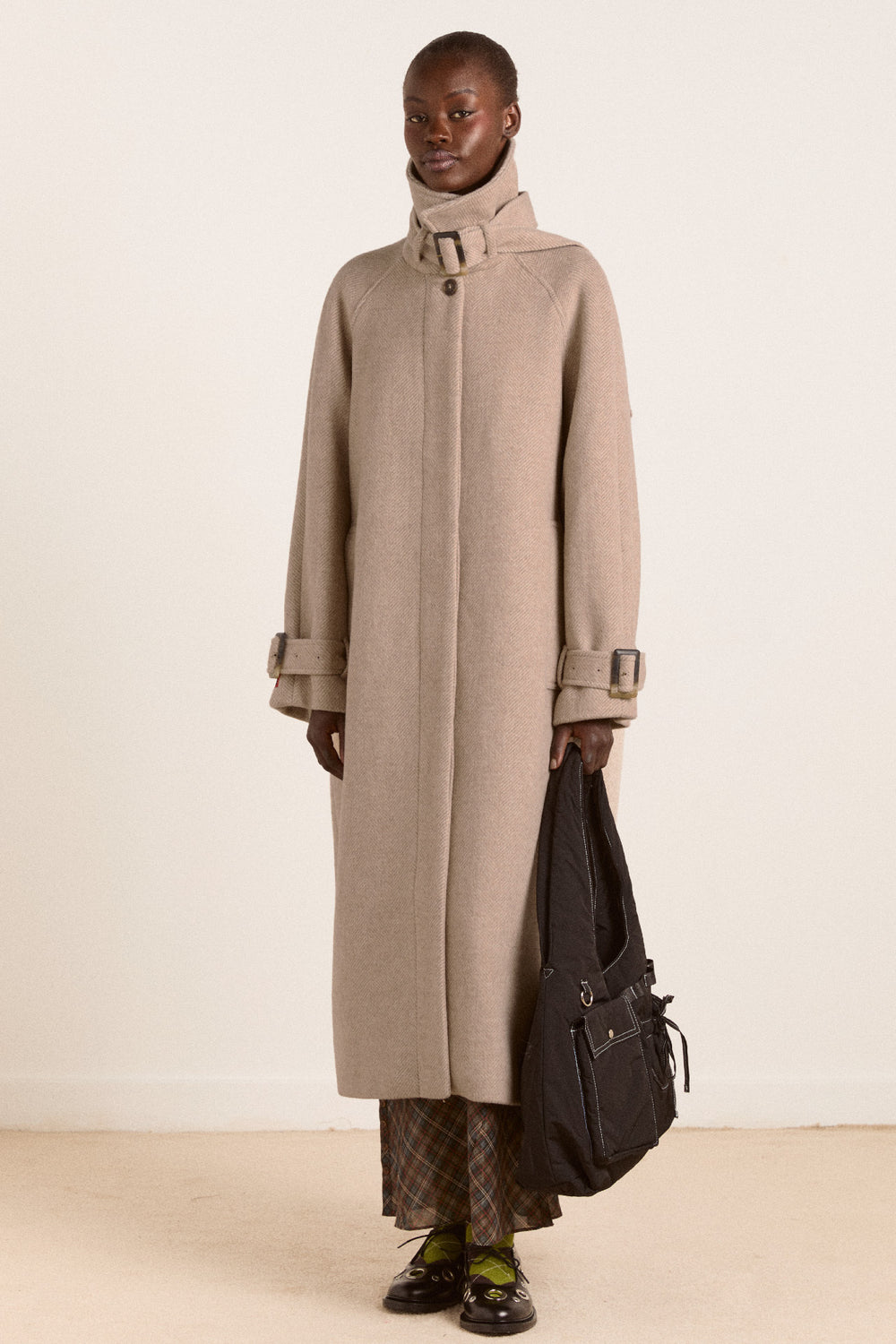 A sophisticated staple, the Jude Wool Coat in Oat fuses tailored structure with expert craftsmanship. Made from 50% recycled wool, 50% recycled polyester, it features deep side pockets and a hidden button placket. Complete with a removable neck tie and cuff details, the Jude will never go out of style.