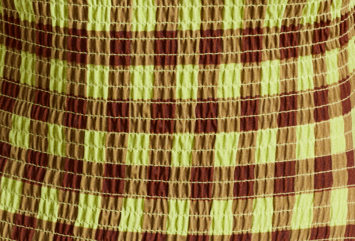 • All over shirred fabric in green gingham